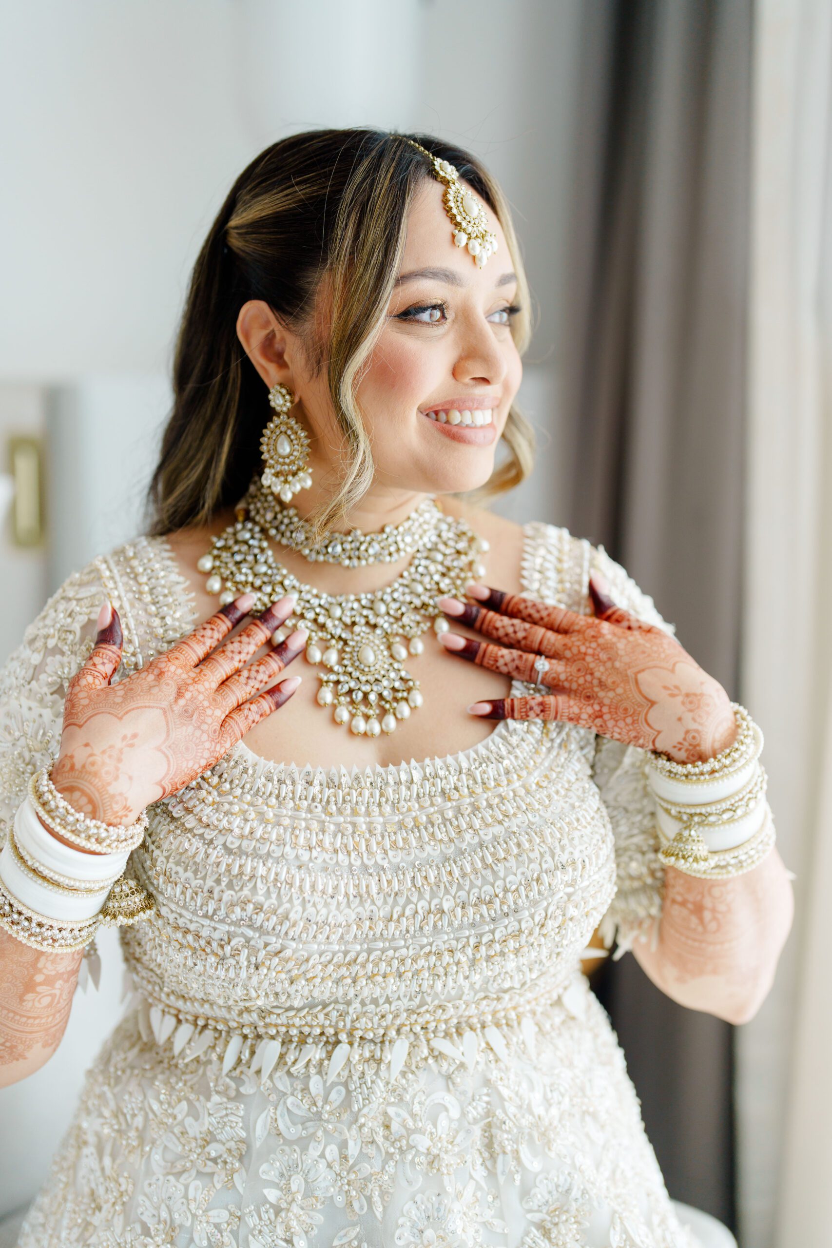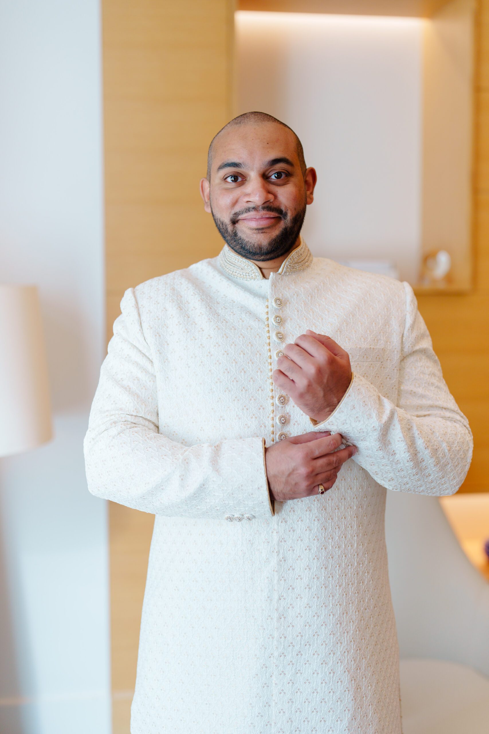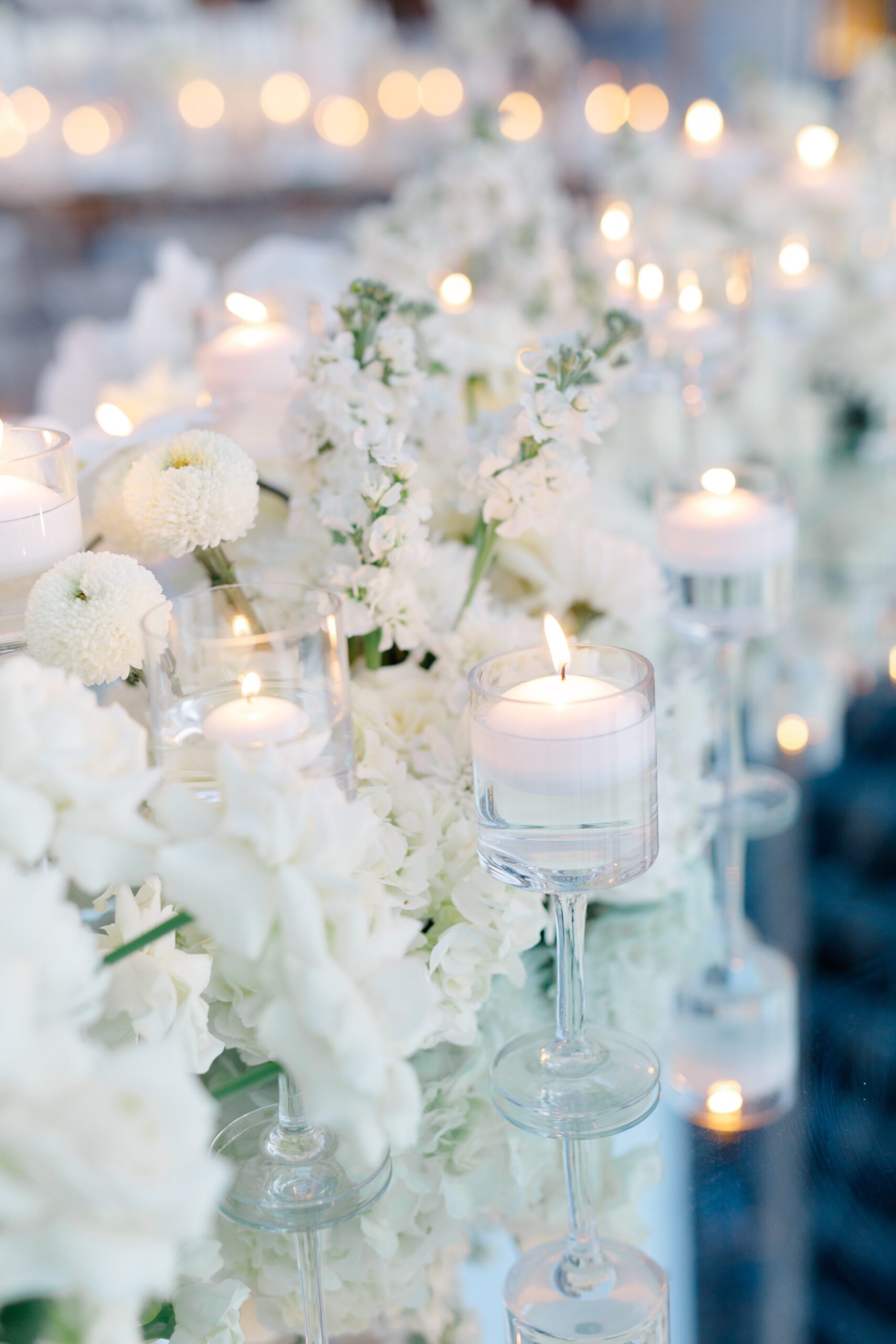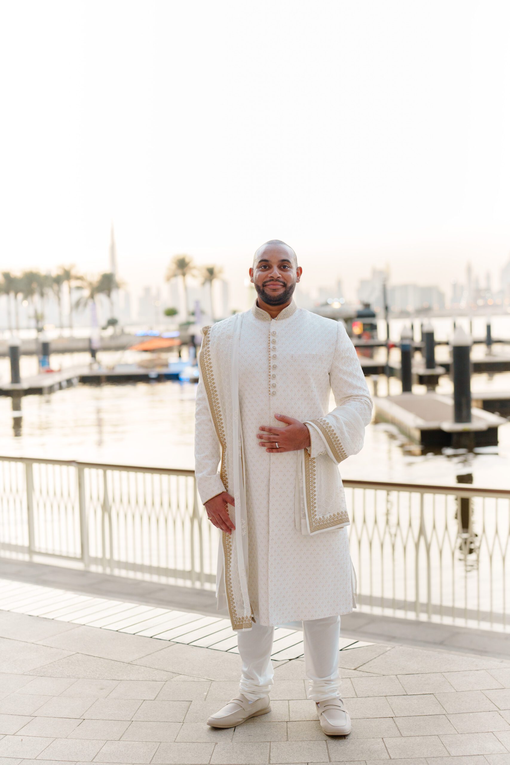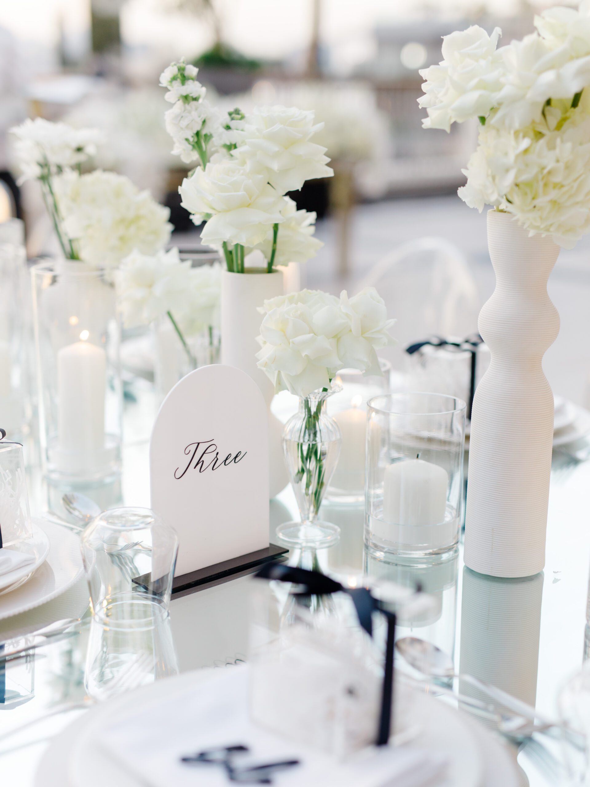 On the terrace of Vida Creek Hotel, overlooking the Dubai skyline, this destination wedding brought sleek sophistication to life. With mirror tables, crystal chandeliers, and all-white florals accented by touches of black, the design was minimal yet striking. The sunset ceremony seamlessly transformed into a chic evening reception, as the couple celebrated their love with an unforgettable view - having journeyed all the way from the UK to say 'I do' in Dubai with their friends and family.