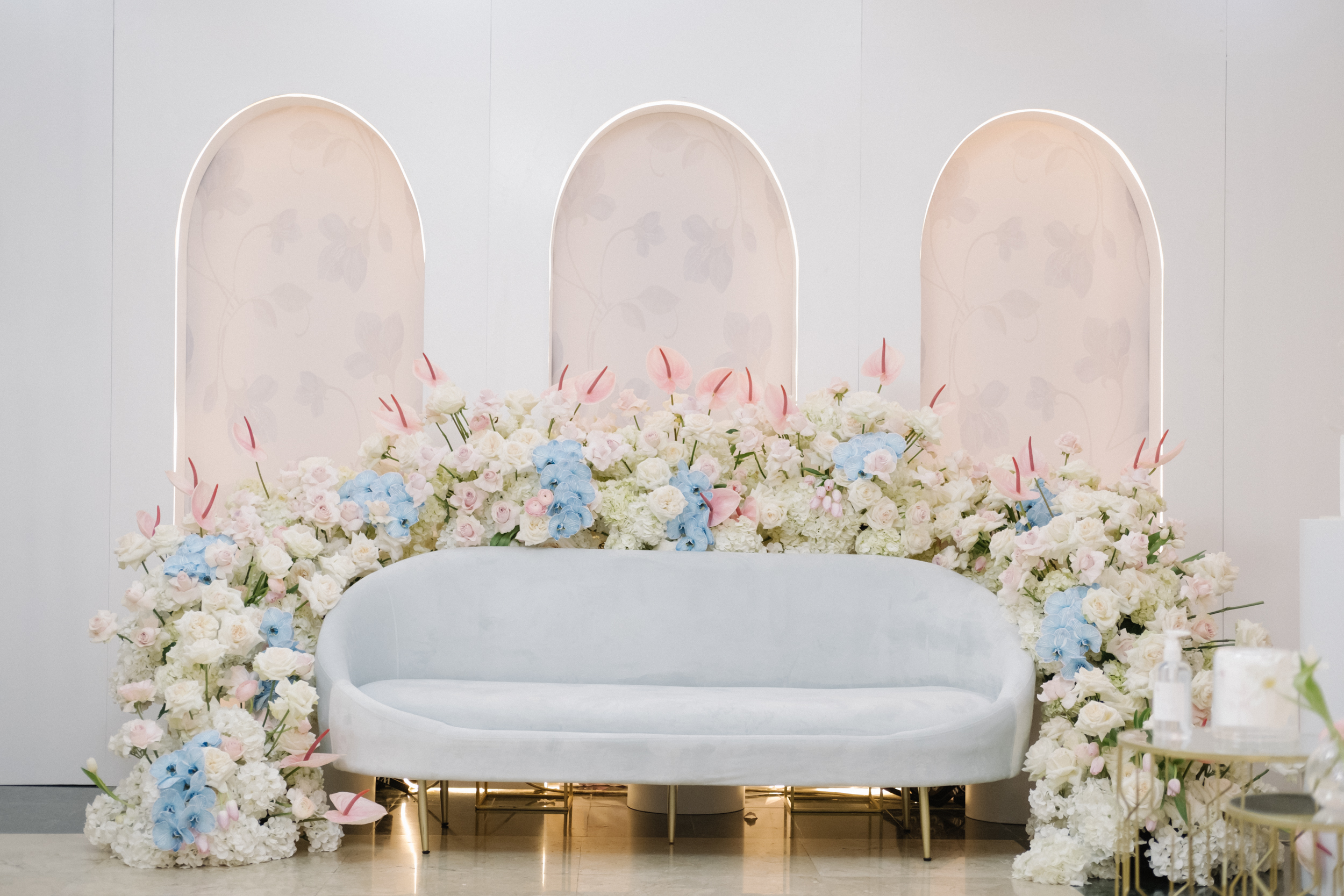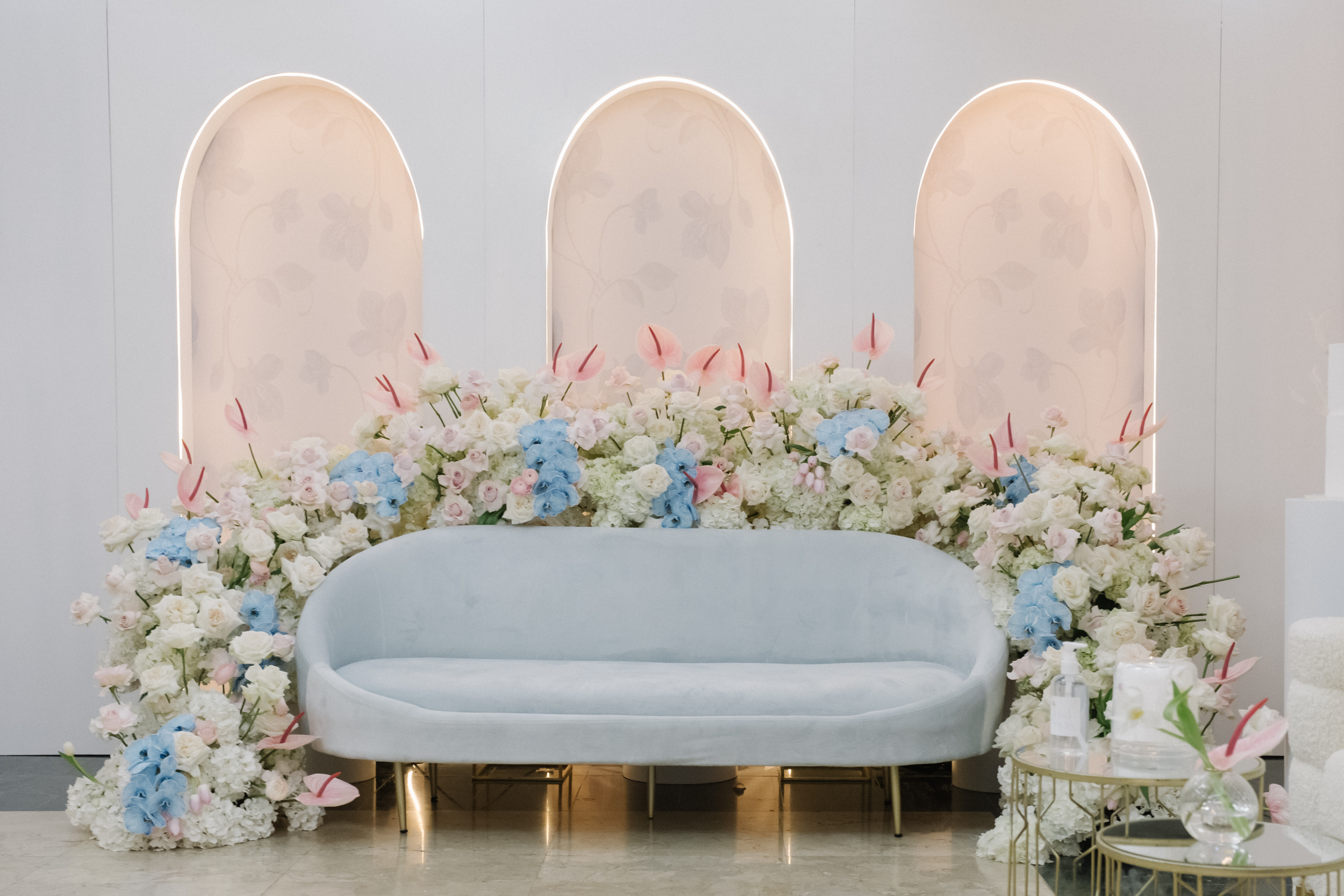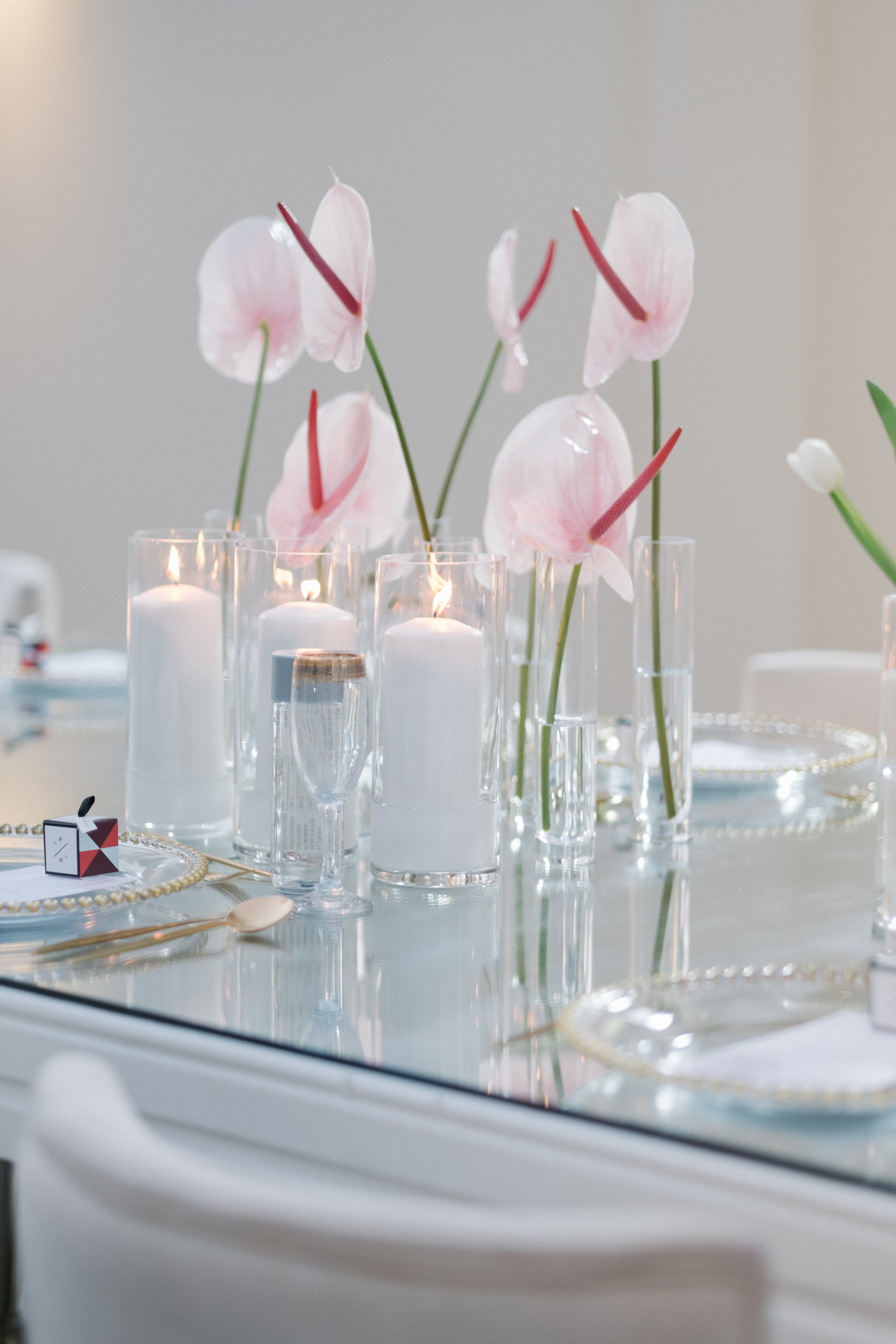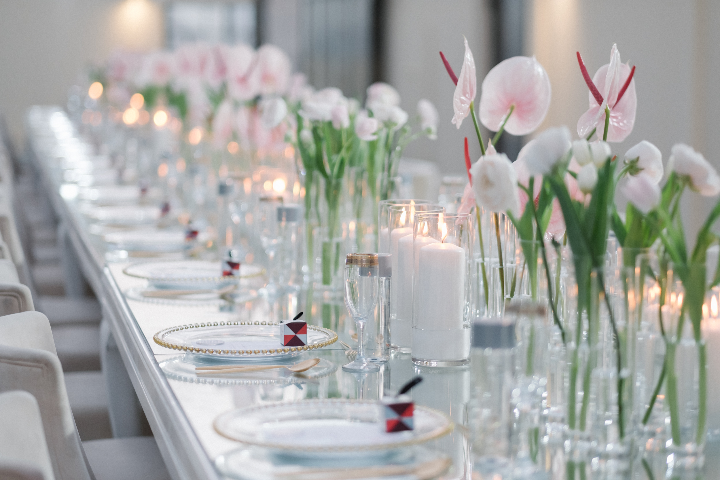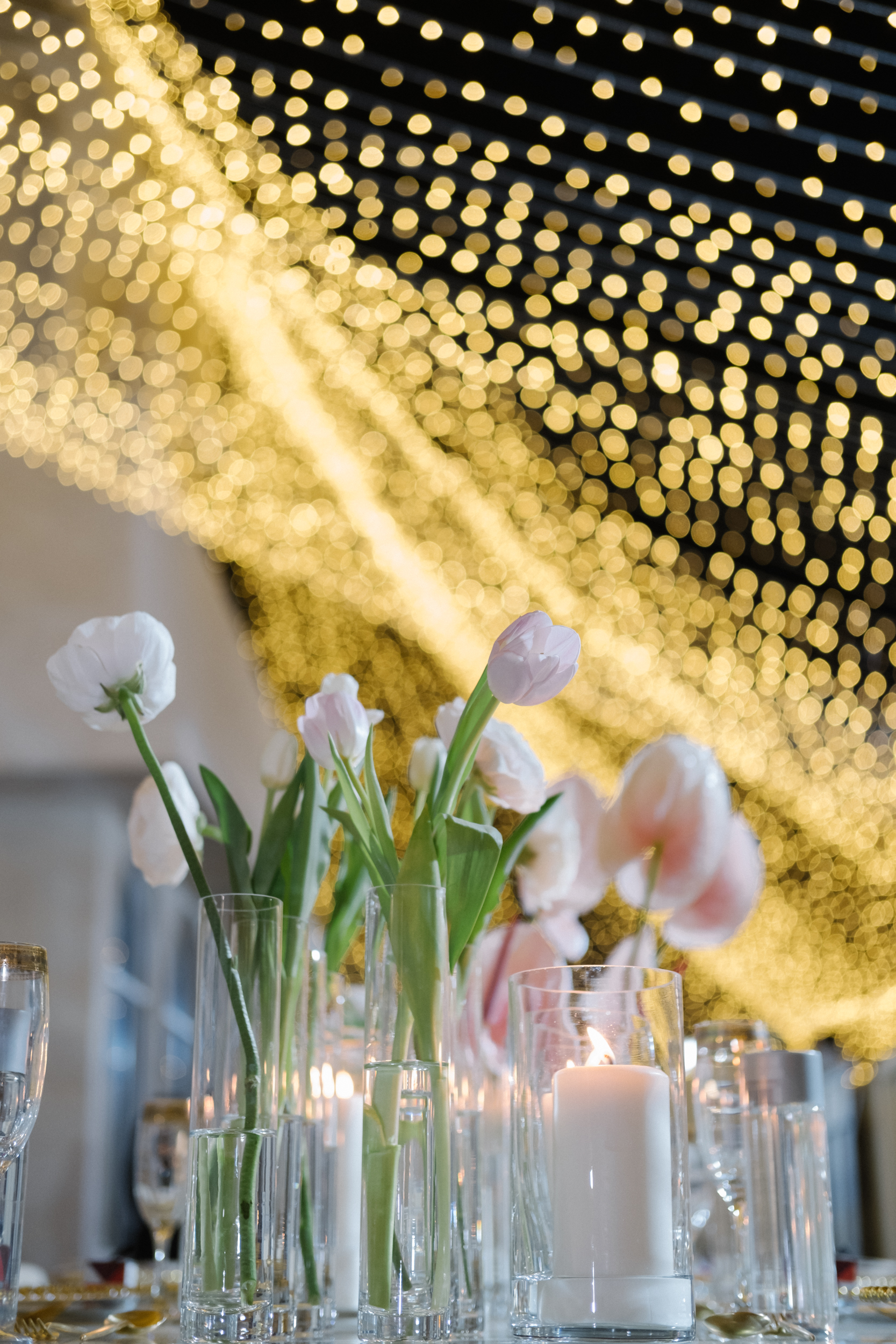 Held in the city of Khorfakkan, this Emirati home wedding offered a magical garden celebration beneath a canopy of fairy lights. Mirror tables and minimalist glass arrangements with single-stem florals created a refined, contemporary atmosphere—an intimate evening where simplicity met effortless sophistication.