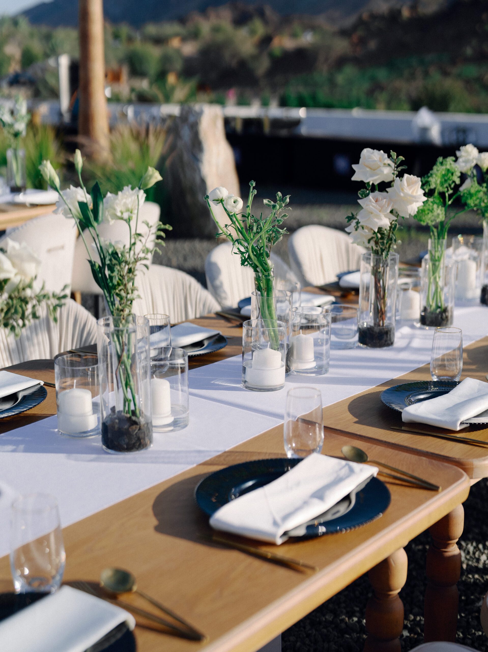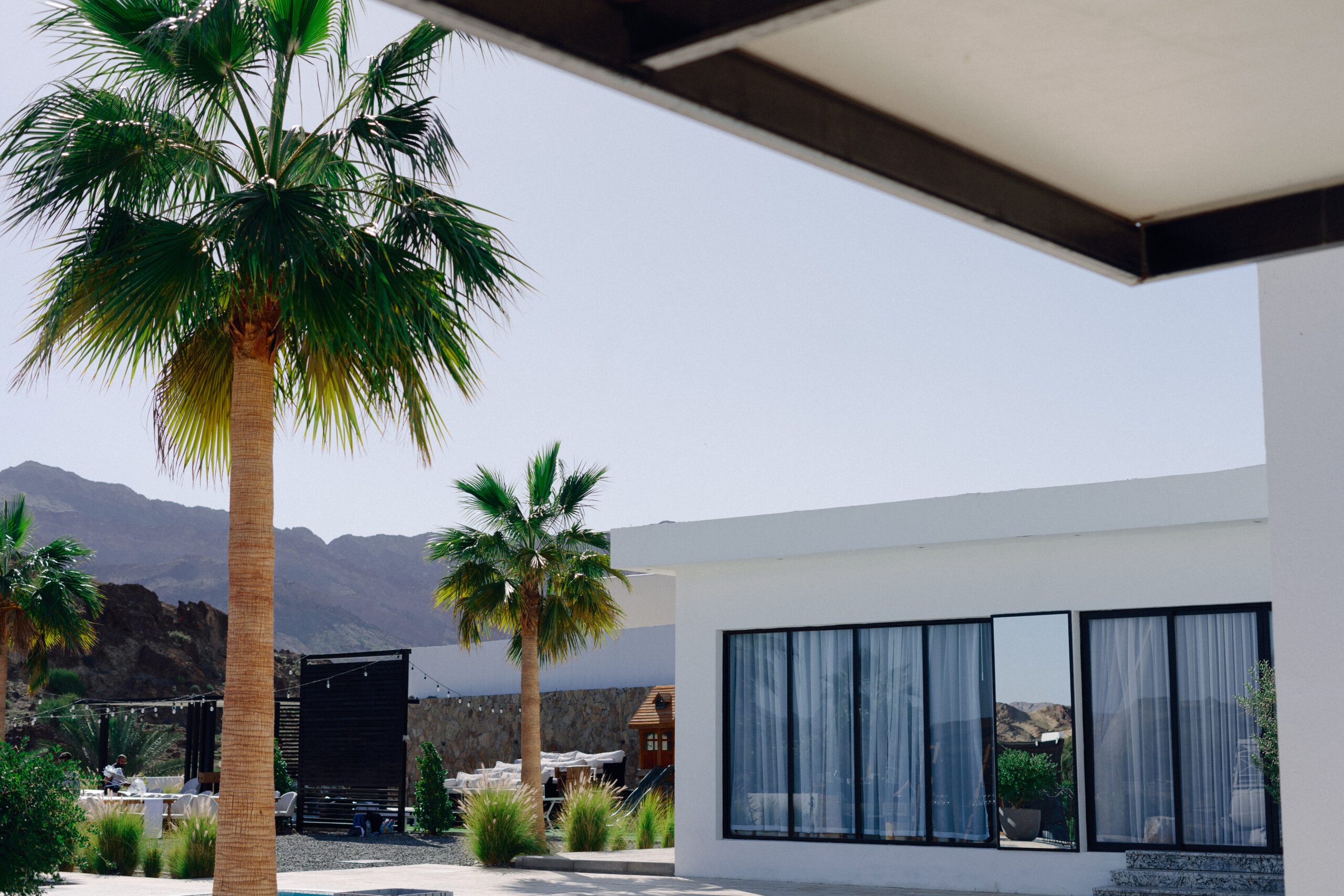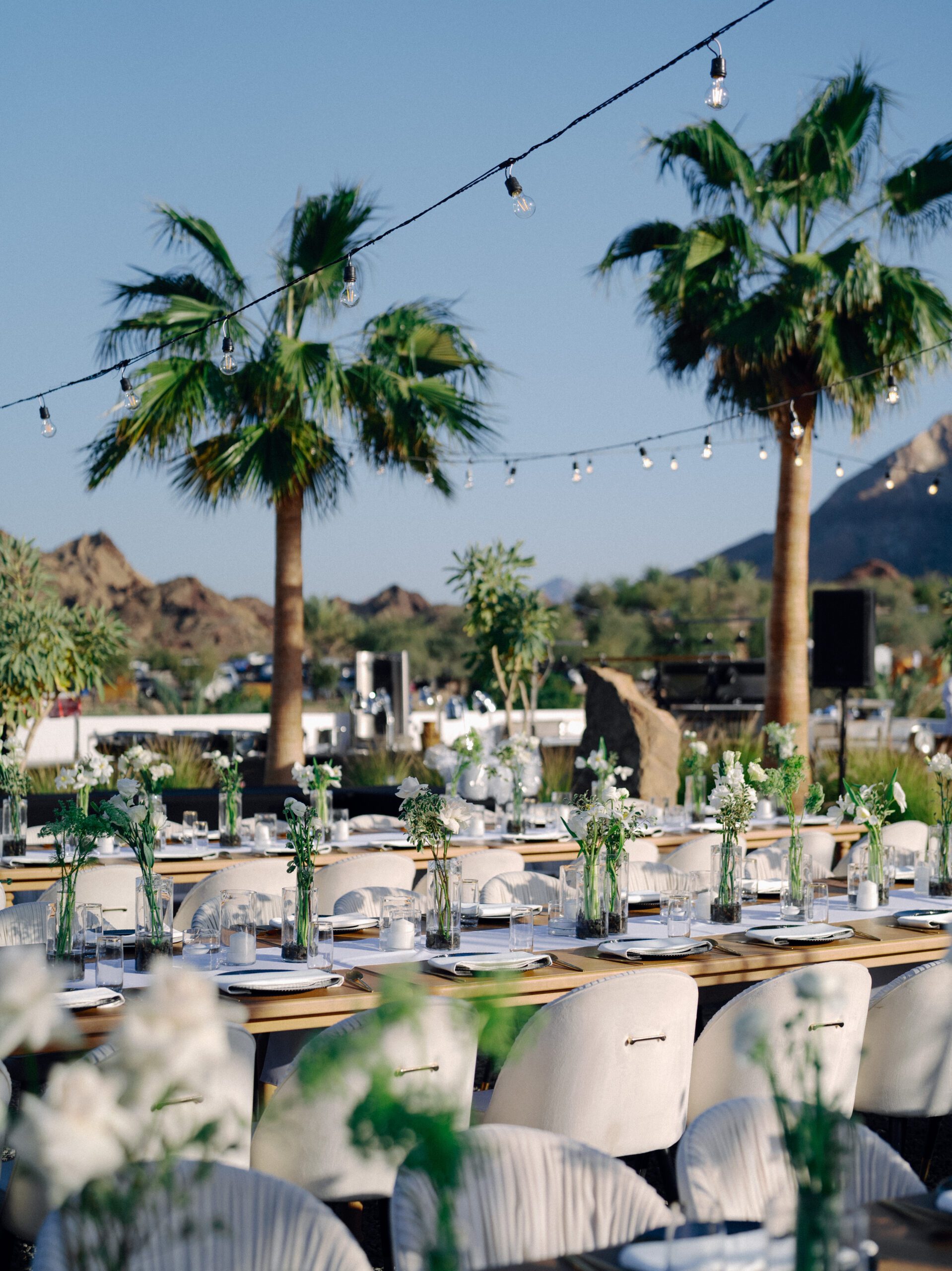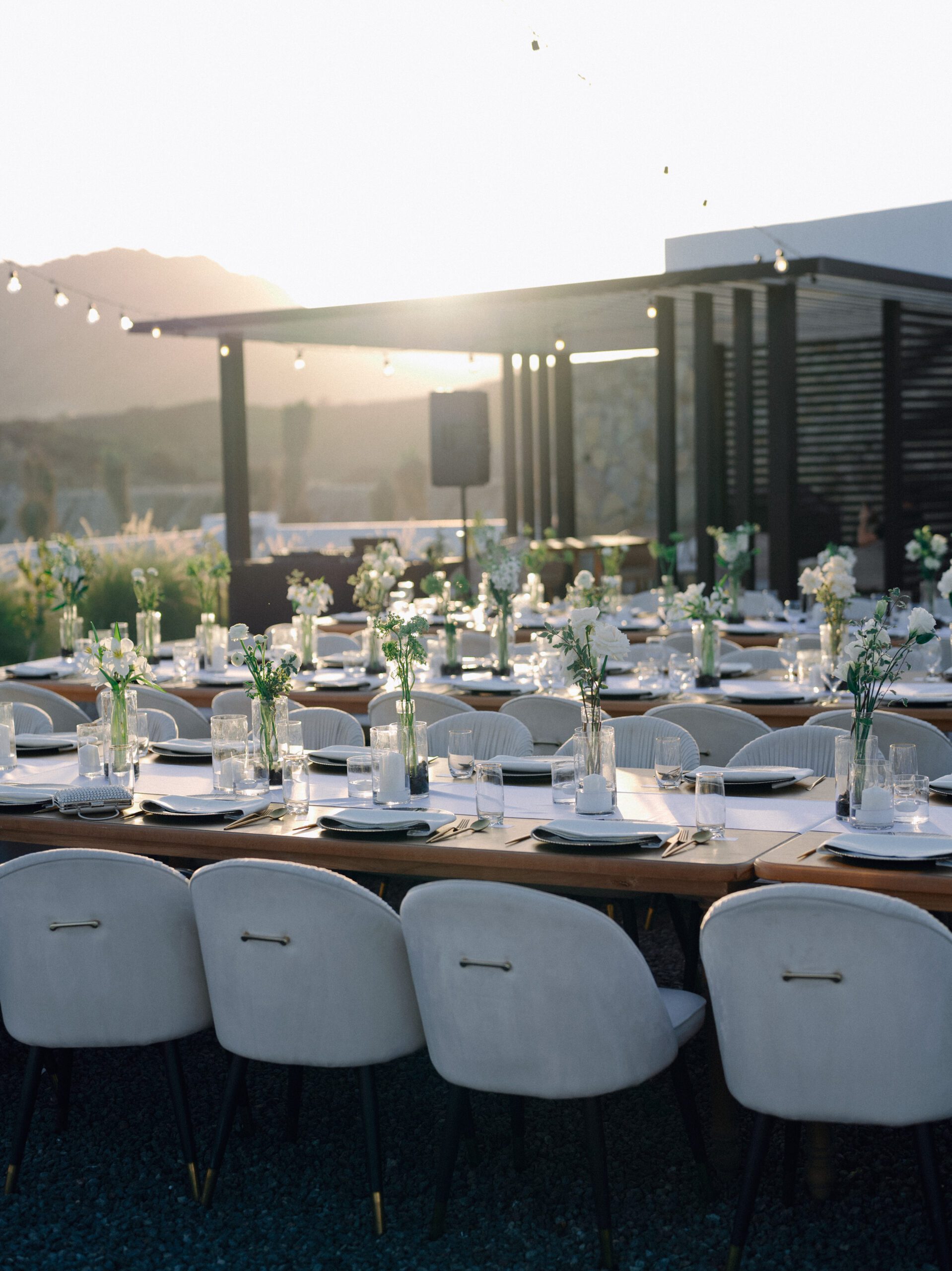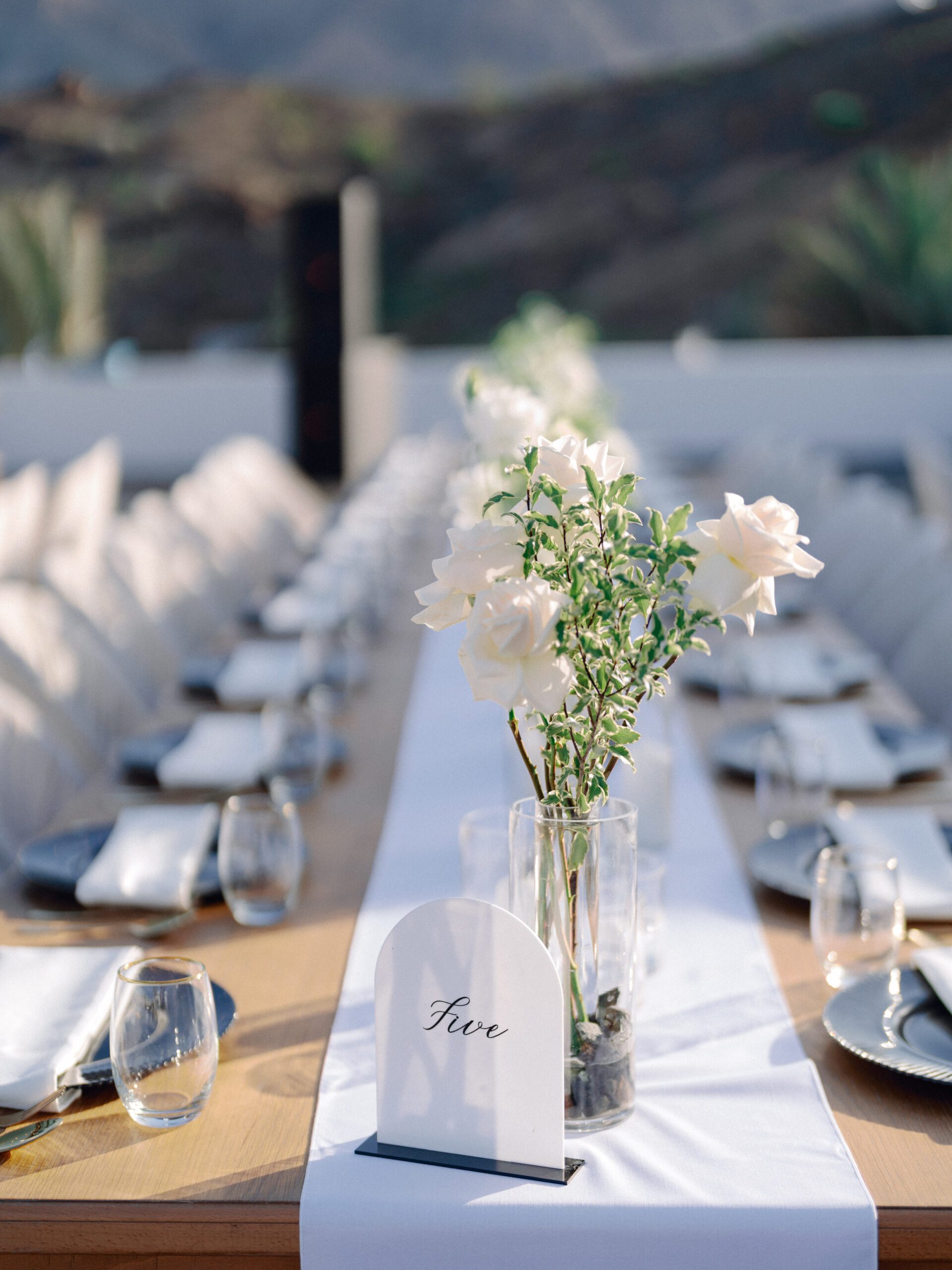 A stunning outdoor celebration set against the majestic mountains of Hatta Haven, where a rugged, rocky terrain was transformed into an elegant and serene luxury venue. The simple yet classic white décor, accented with touches of black for contrast and a minimalistic feel, beautifully complemented the natural landscape, creating a harmonious and unforgettable atmosphere.