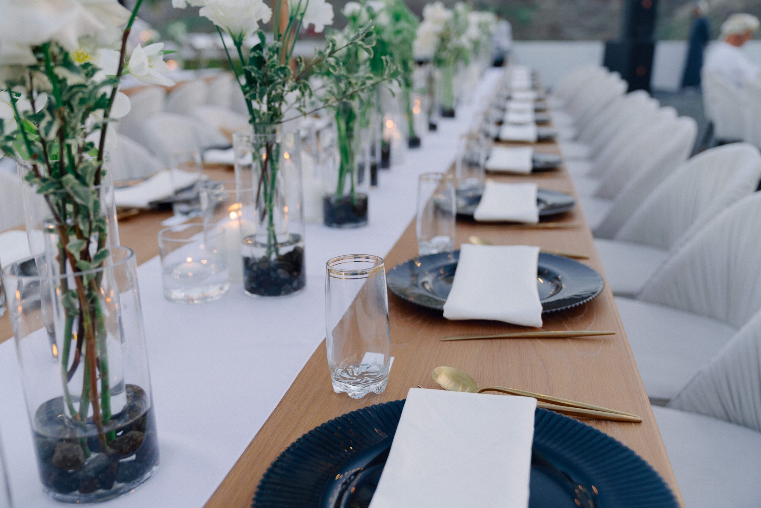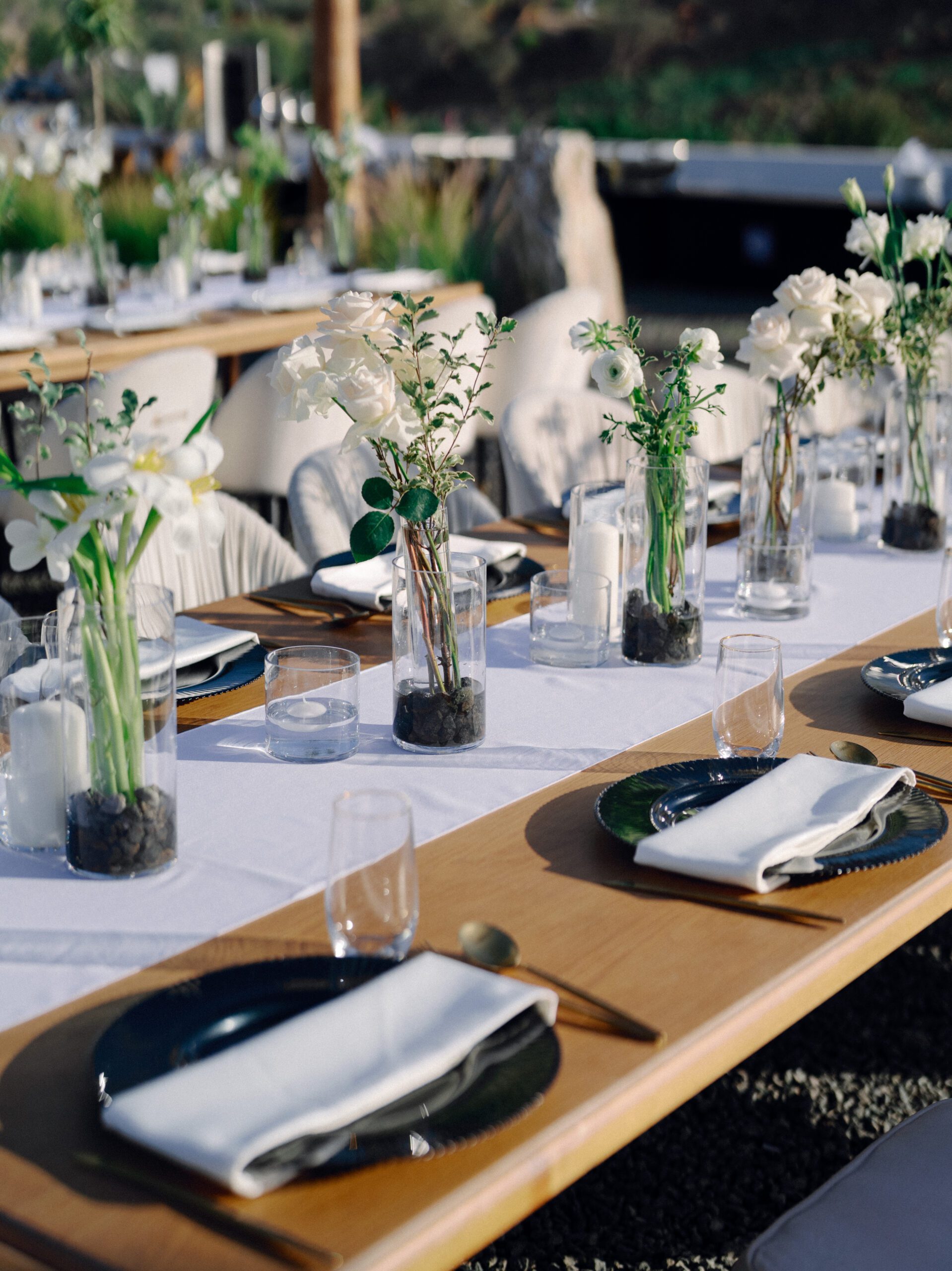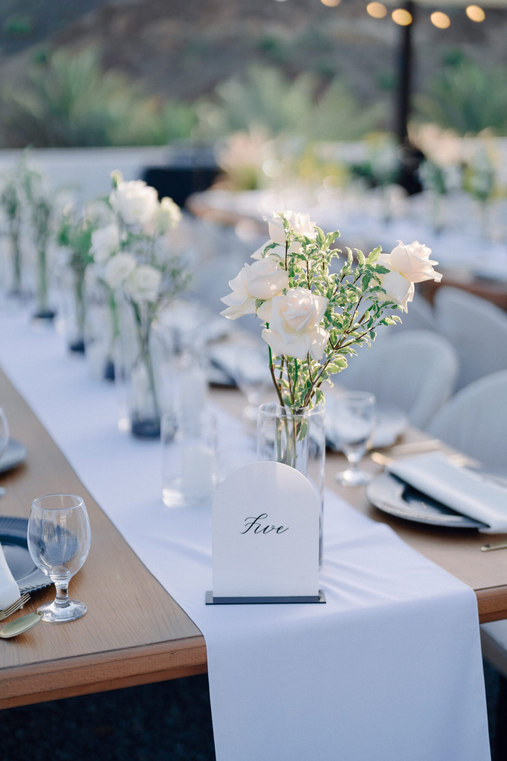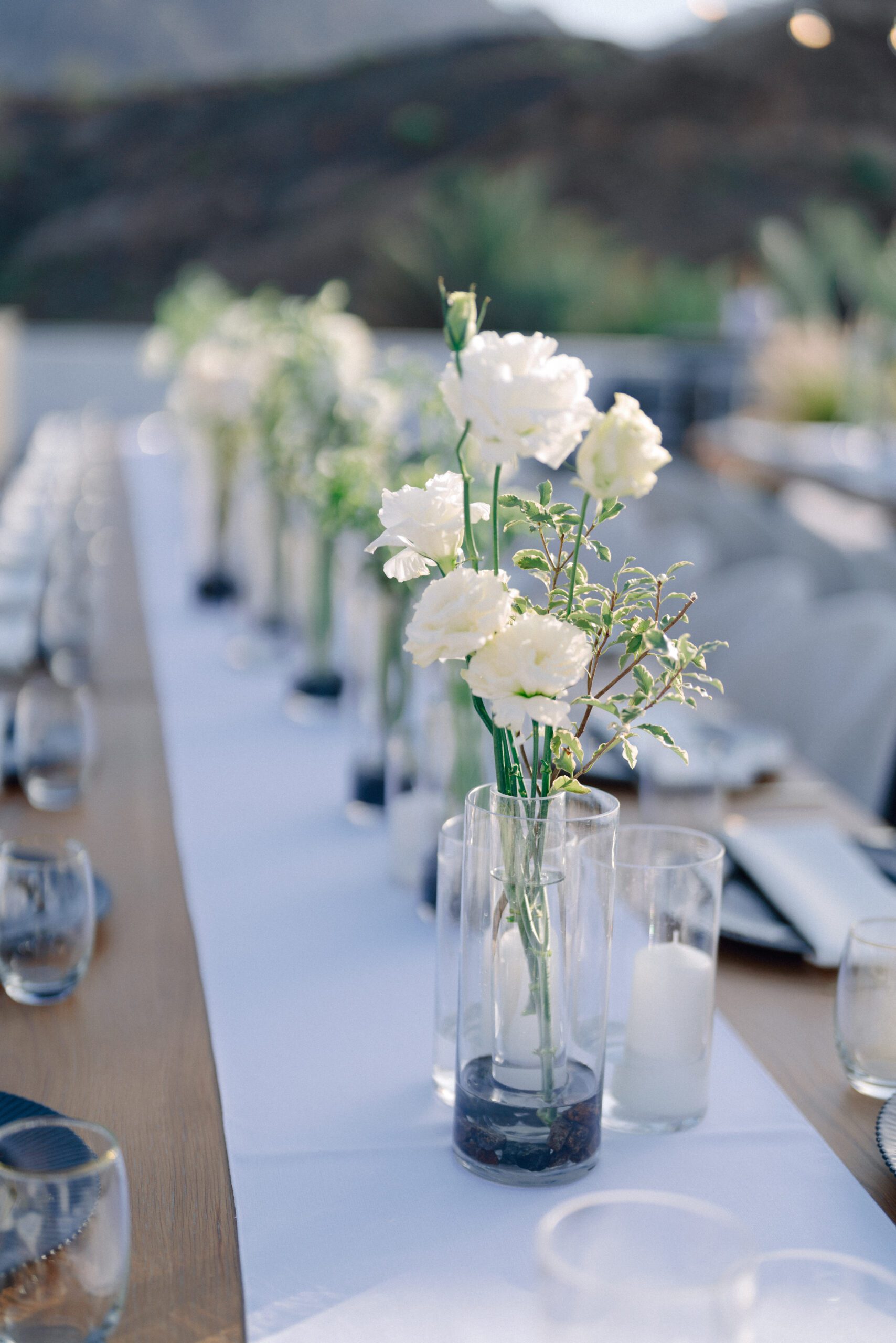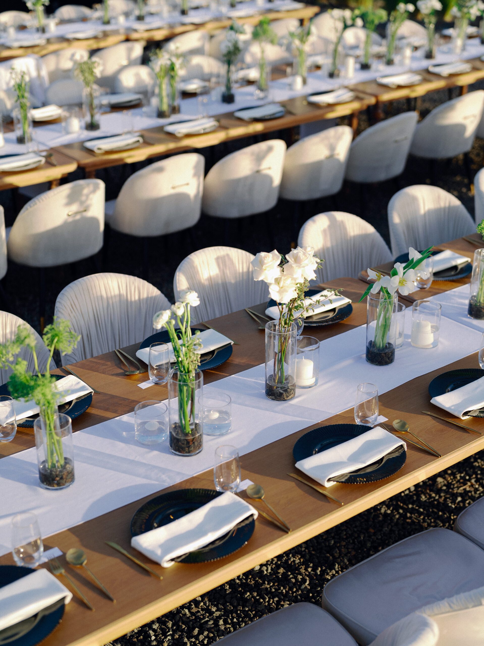 A stunning outdoor celebration set against the majestic mountains of Hatta Haven, where a rugged, rocky terrain was transformed into an elegant and serene luxury venue. The simple yet classic white décor, accented with touches of black for contrast and a minimalistic feel, beautifully complemented the natural landscape, creating a harmonious and unforgettable atmosphere.