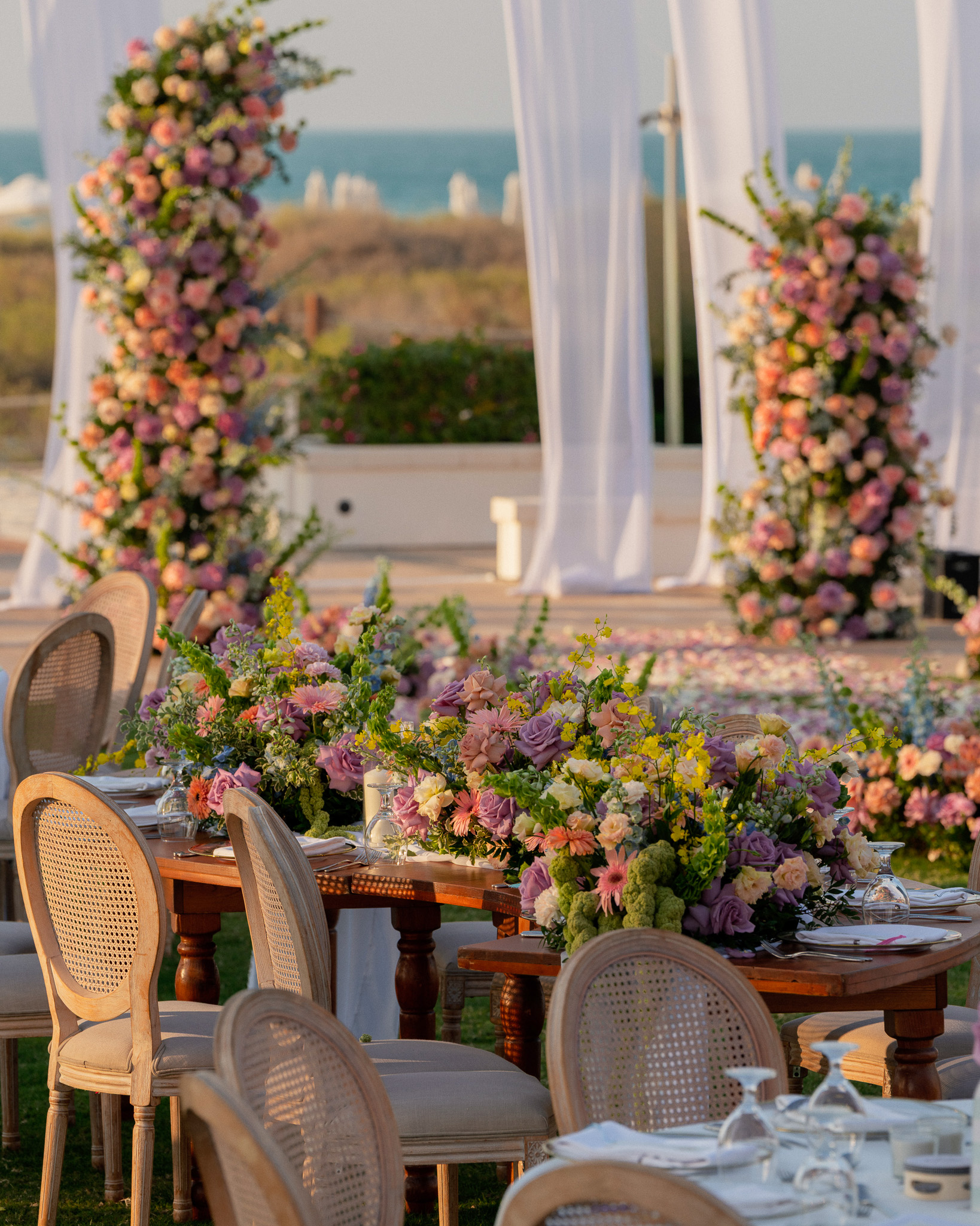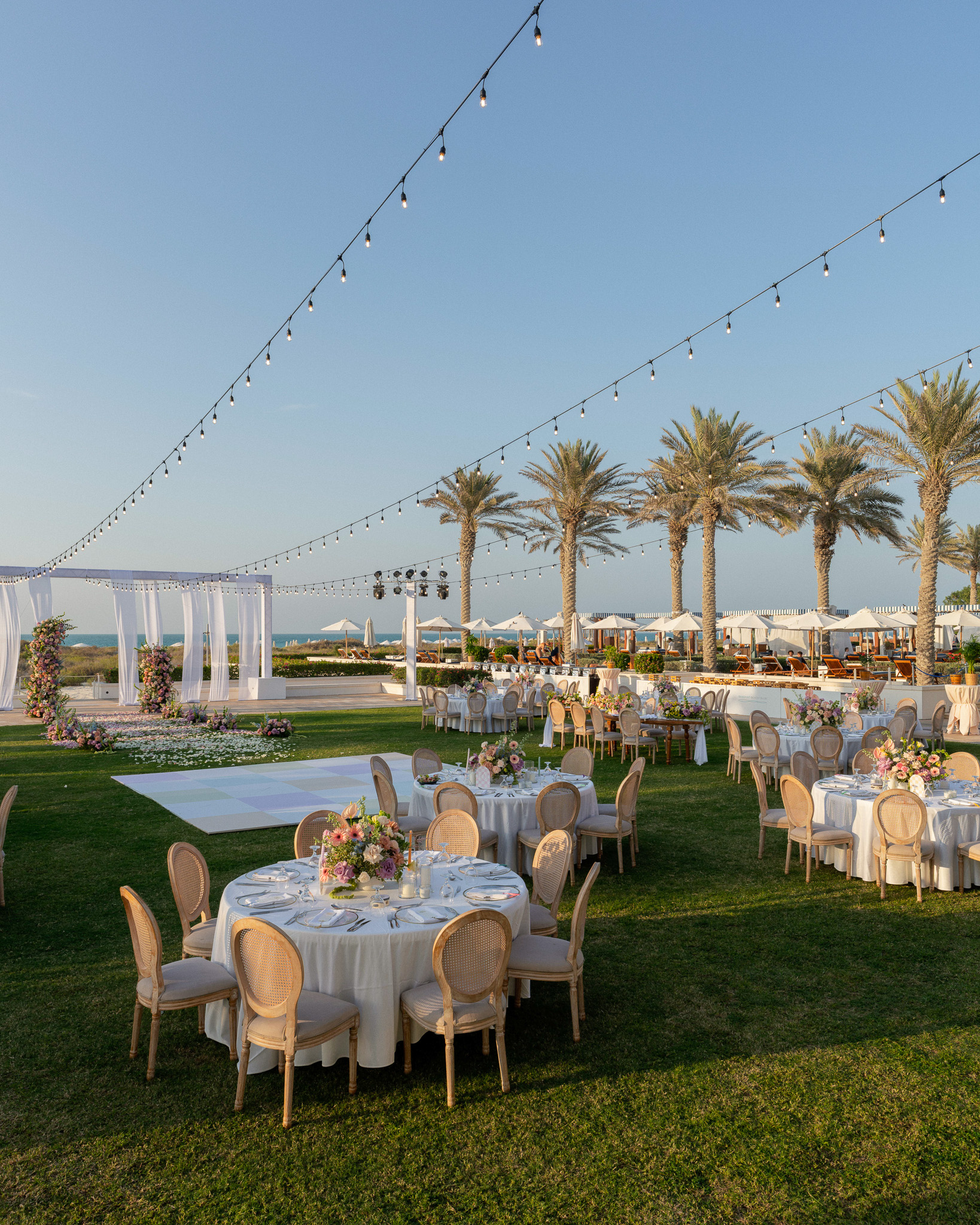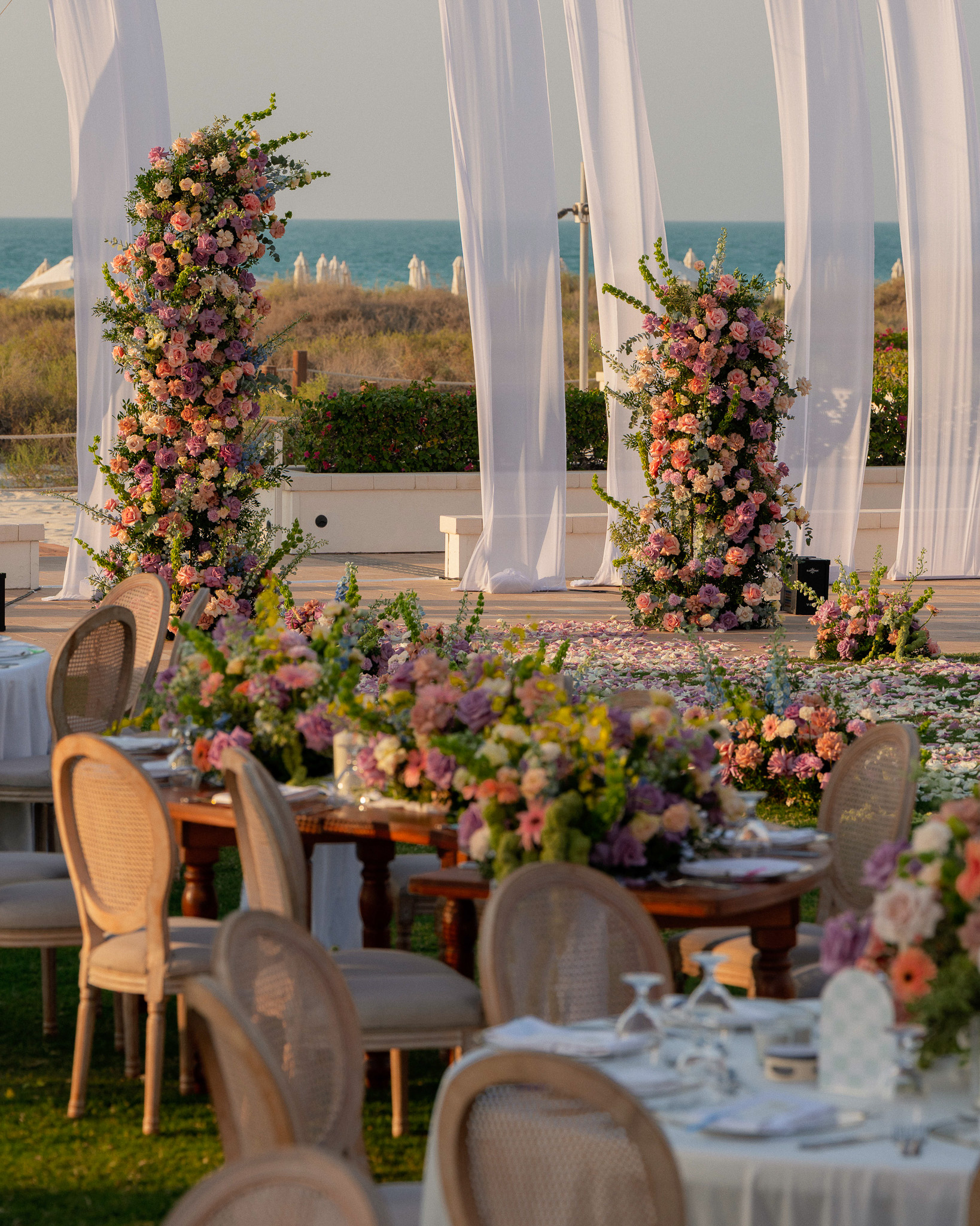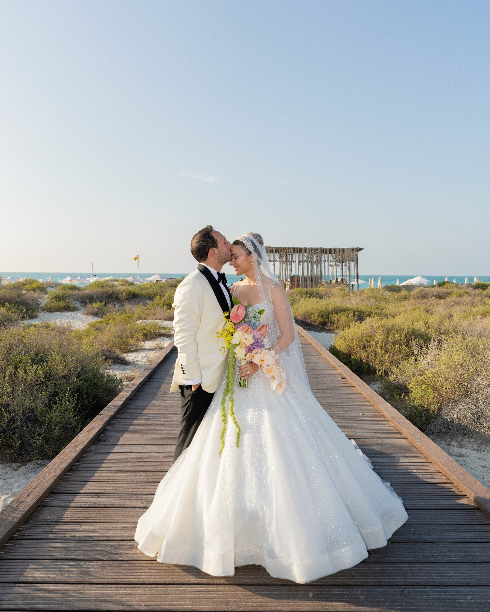 Set against the breathtaking backdrop of Abu Dhabi's coastline, this wedding at Saadiyat Beach Club brought us the joy of planning this vibrant seaside celebration, where every detail was designed to be as fresh and lively as the couple's love story. From hand-picked floral palette to the magical sunset backdrop, this wasn't just a wedding - it was a masterpiece in motion.