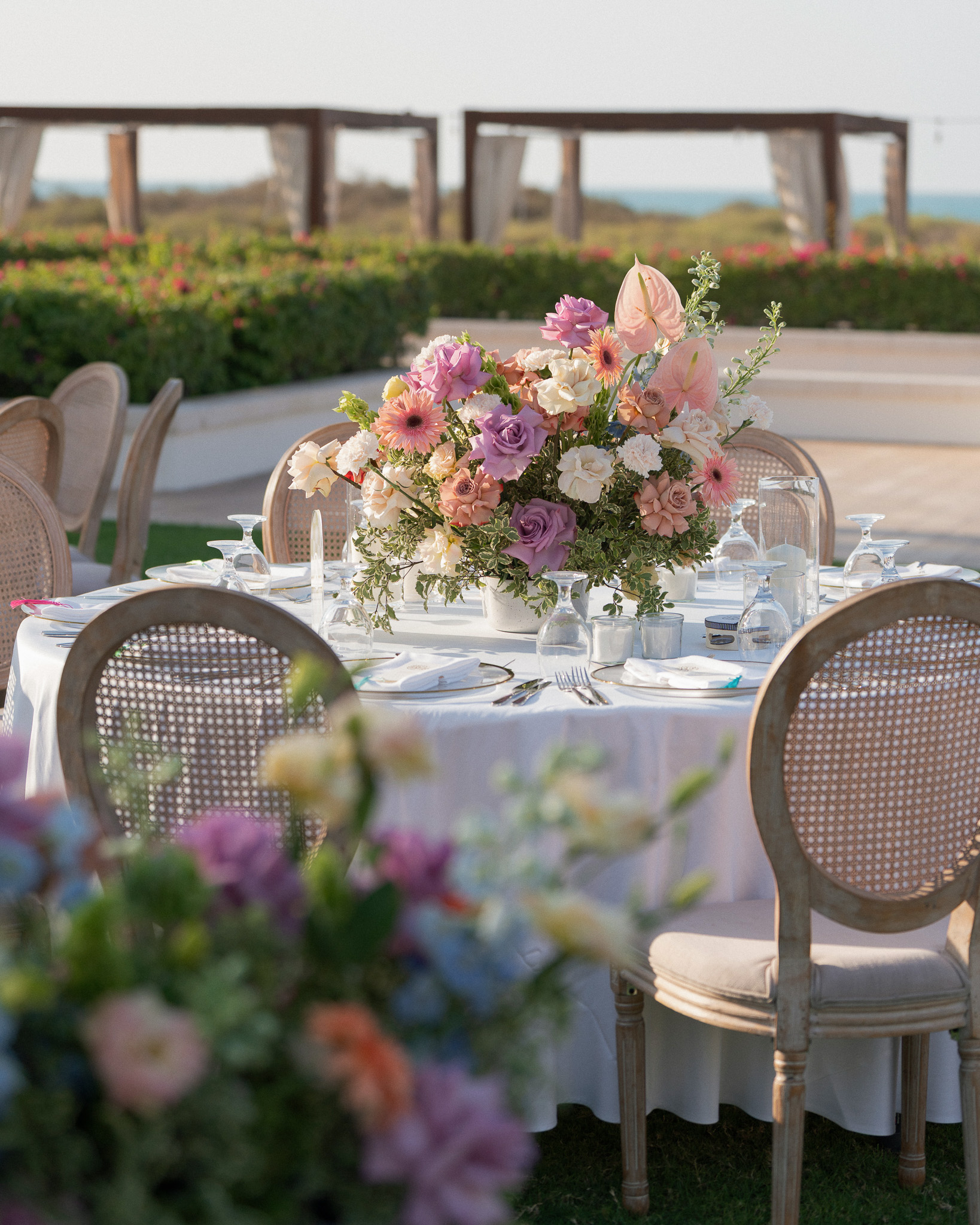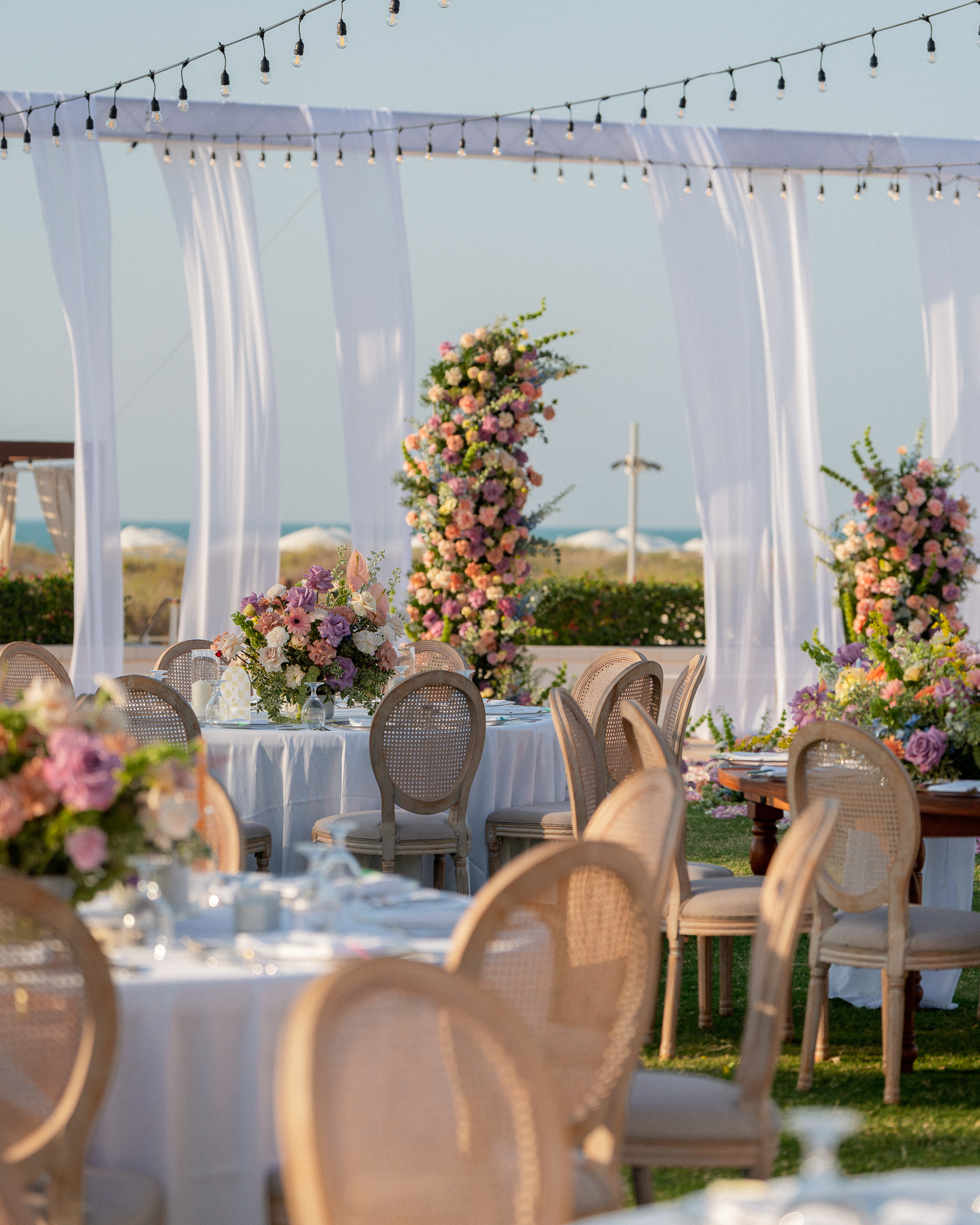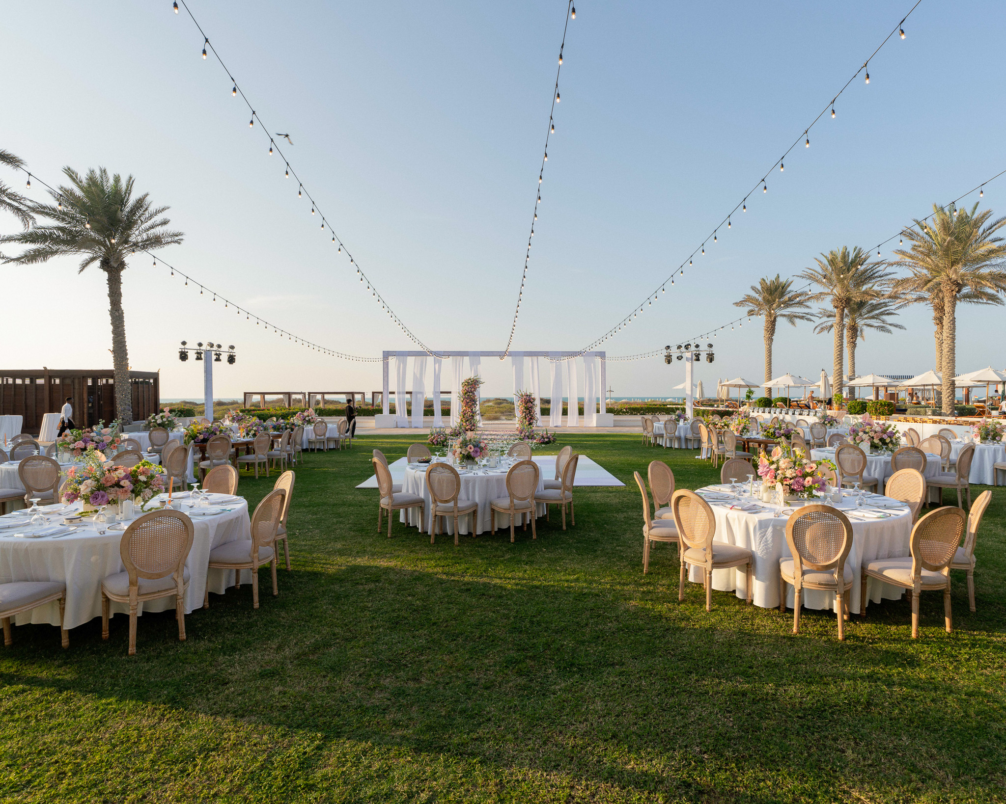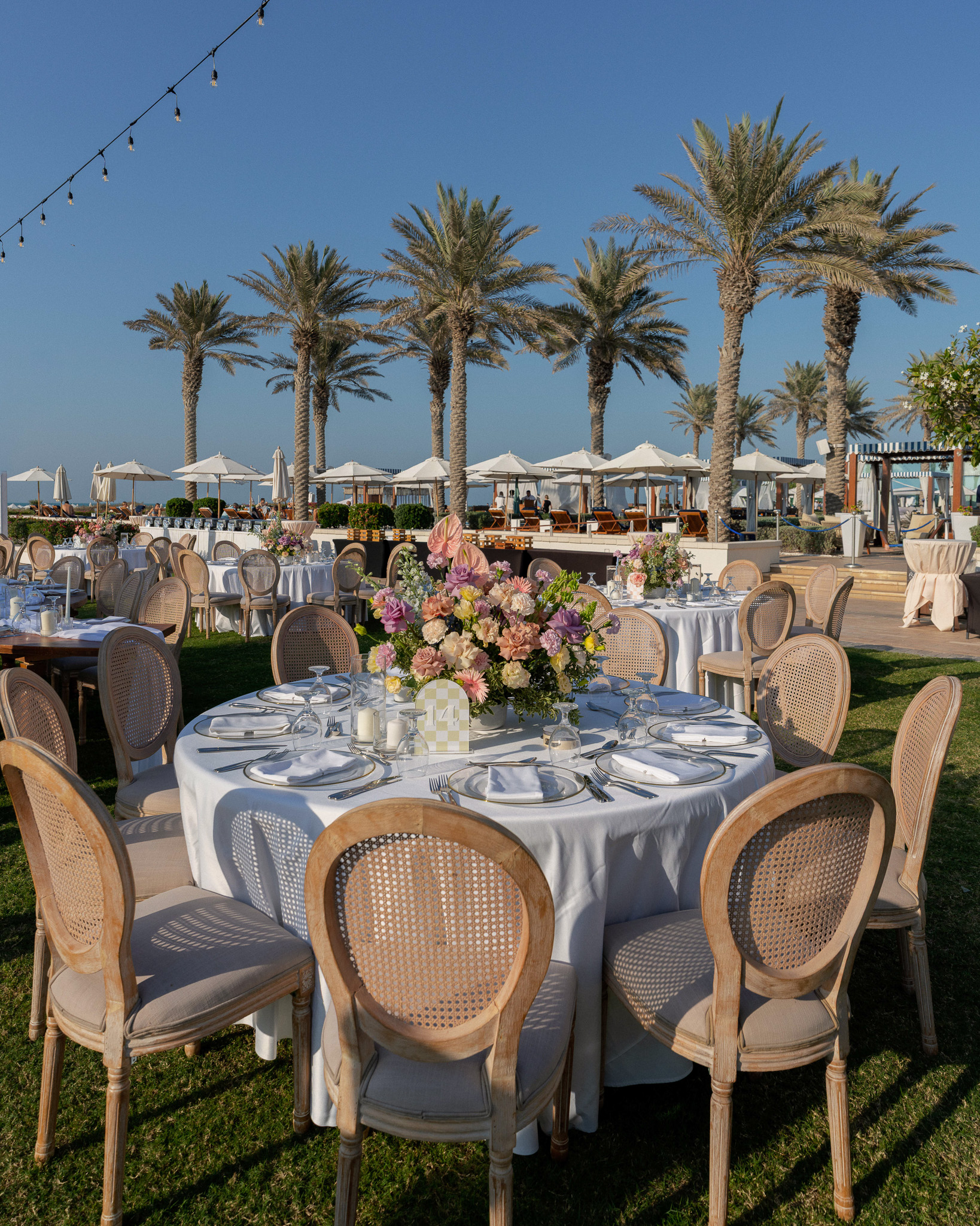 Set against the breathtaking backdrop of Abu Dhabi's coastline, this wedding at Saadiyat Beach Club brought us the joy of planning this vibrant seaside celebration, where every detail was designed to be as fresh and lively as the couple's love story. From hand-picked floral palette to the magical sunset backdrop, this wasn't just a wedding - it was a masterpiece in motion.