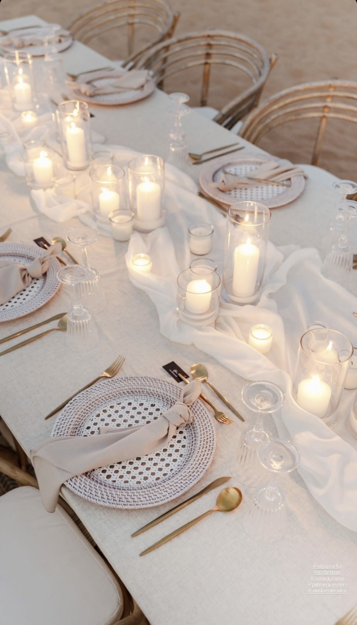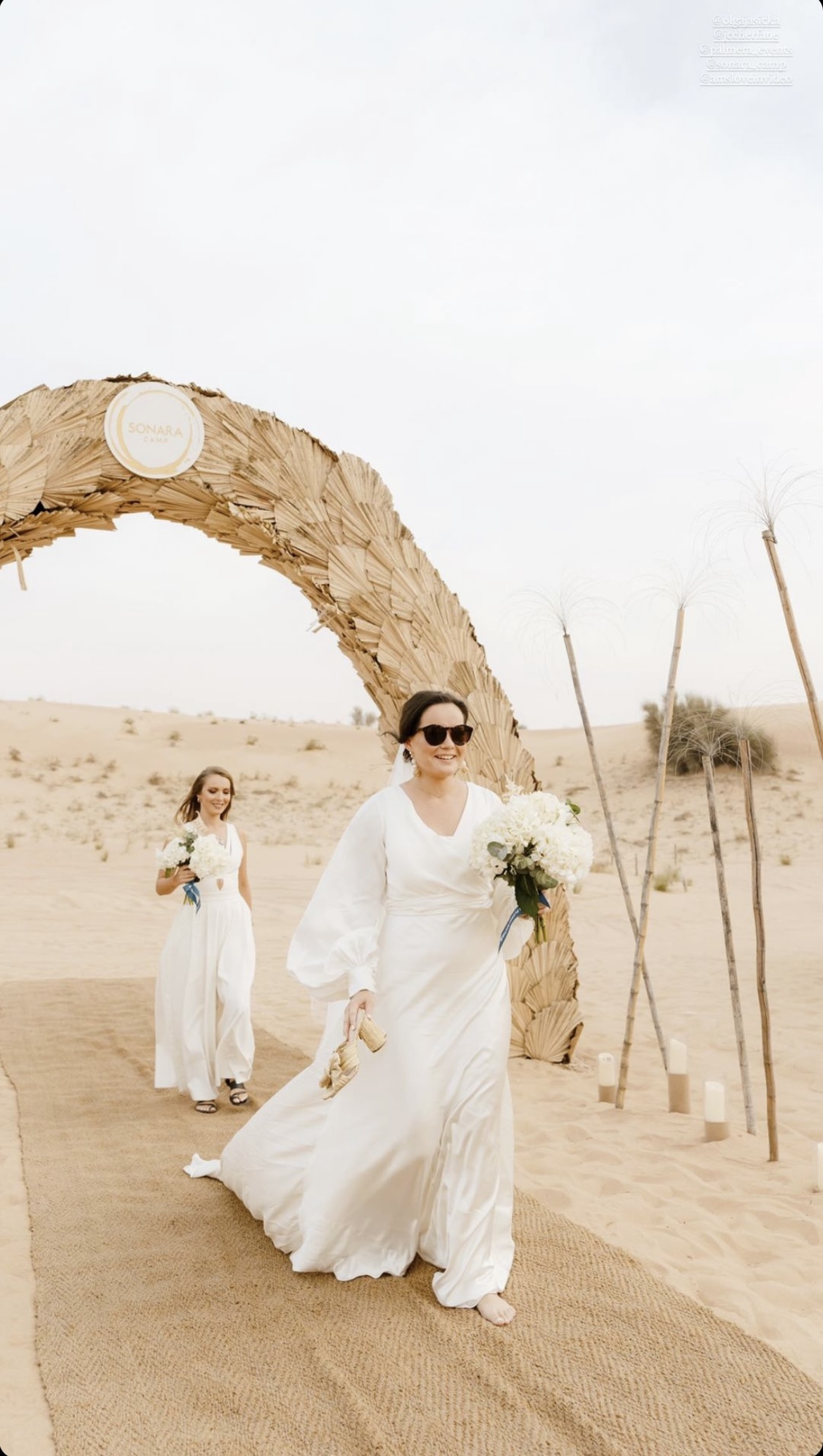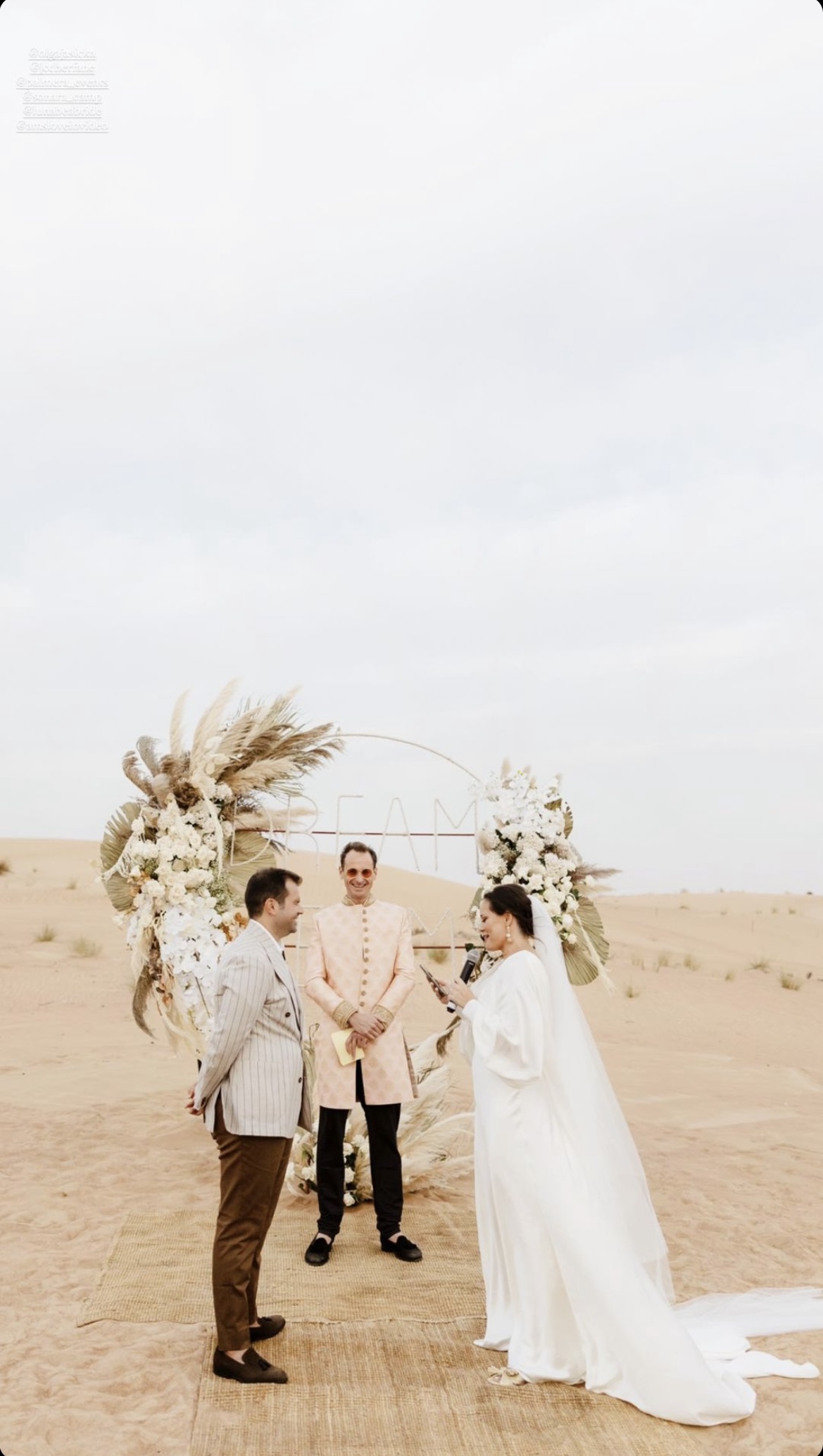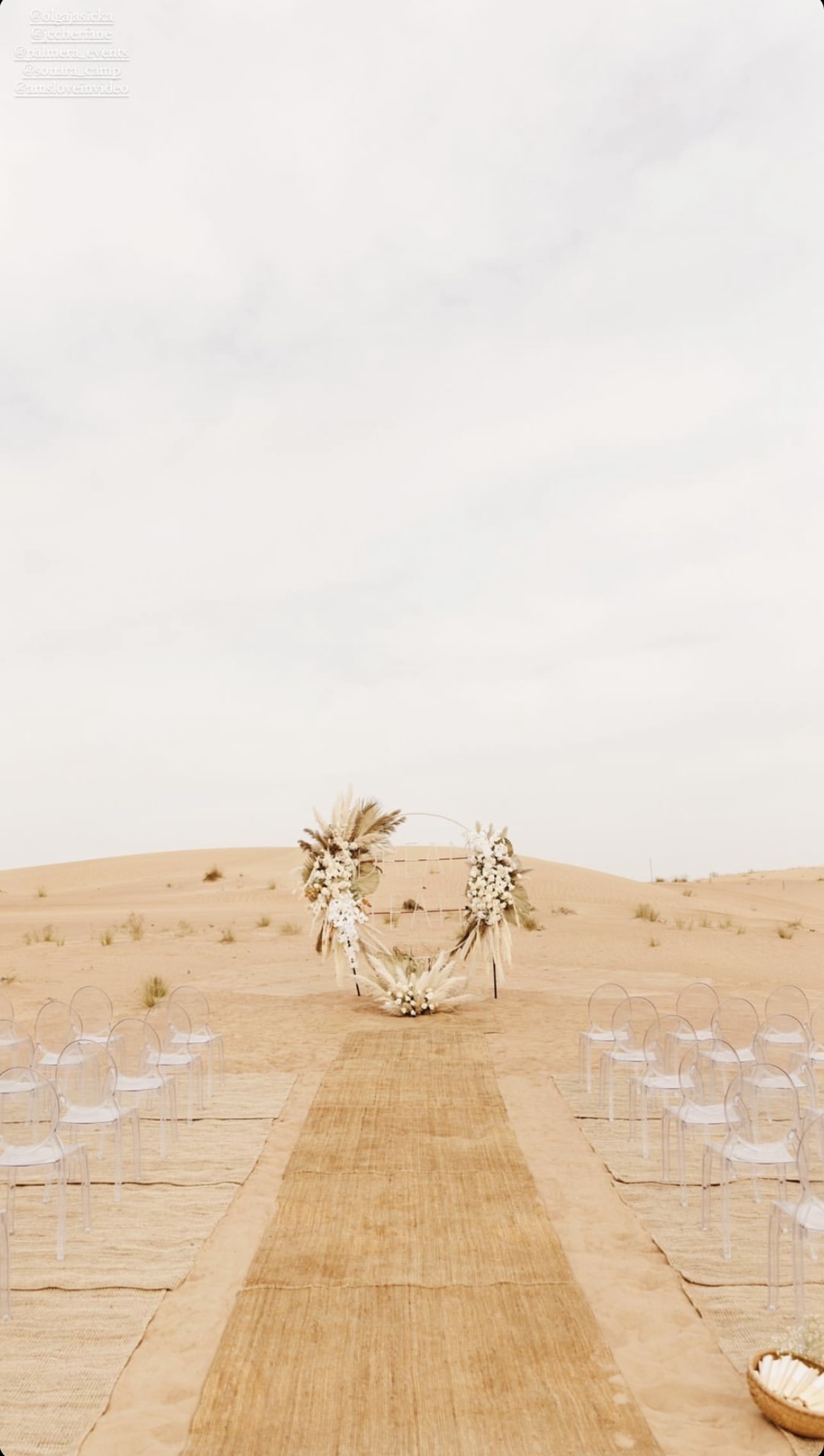 Set in the heart of Dubai’s desert at Sonara Camp, this Burning Man-inspired wedding embraced a boho-chic vibe with neutral décor, disco balls, and an abundance of candles. The ceremony blended desert minimalism with eclectic flair, while the candlelit dinner created an intimate, atmospheric setting. With fire shows and creatively dressed guests, the celebration was a bold, unforgettable fusion of artistry, love, and desert magic.