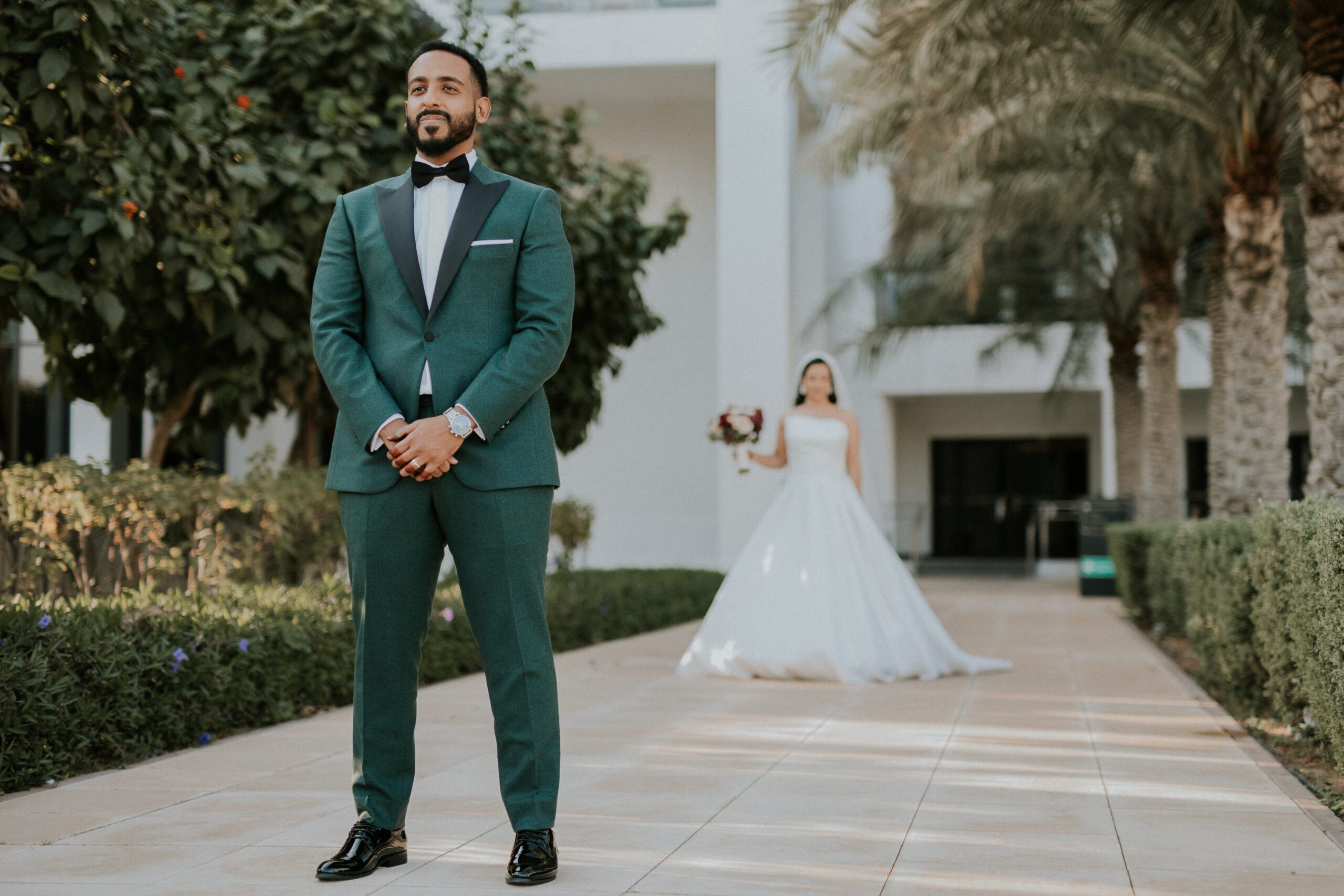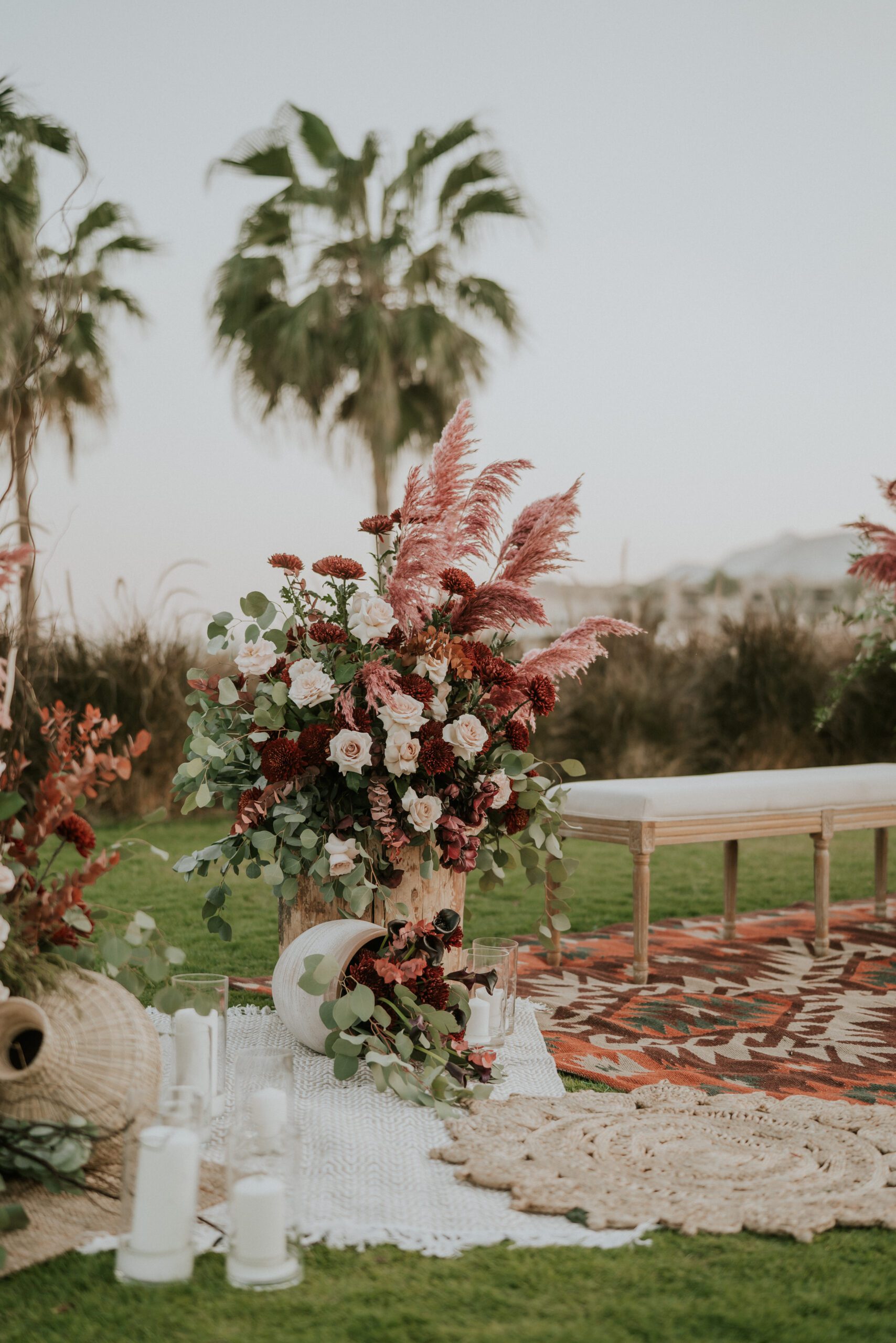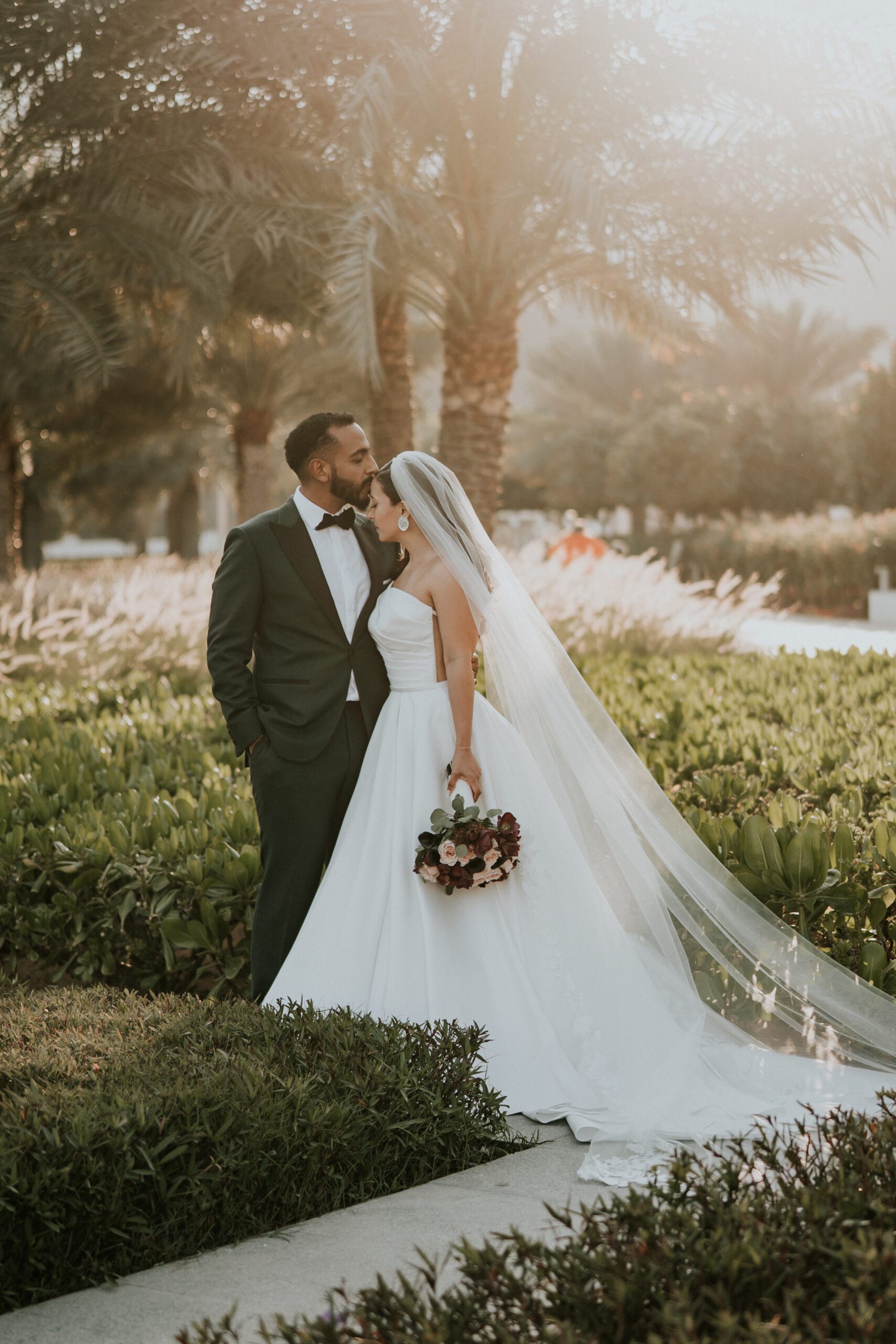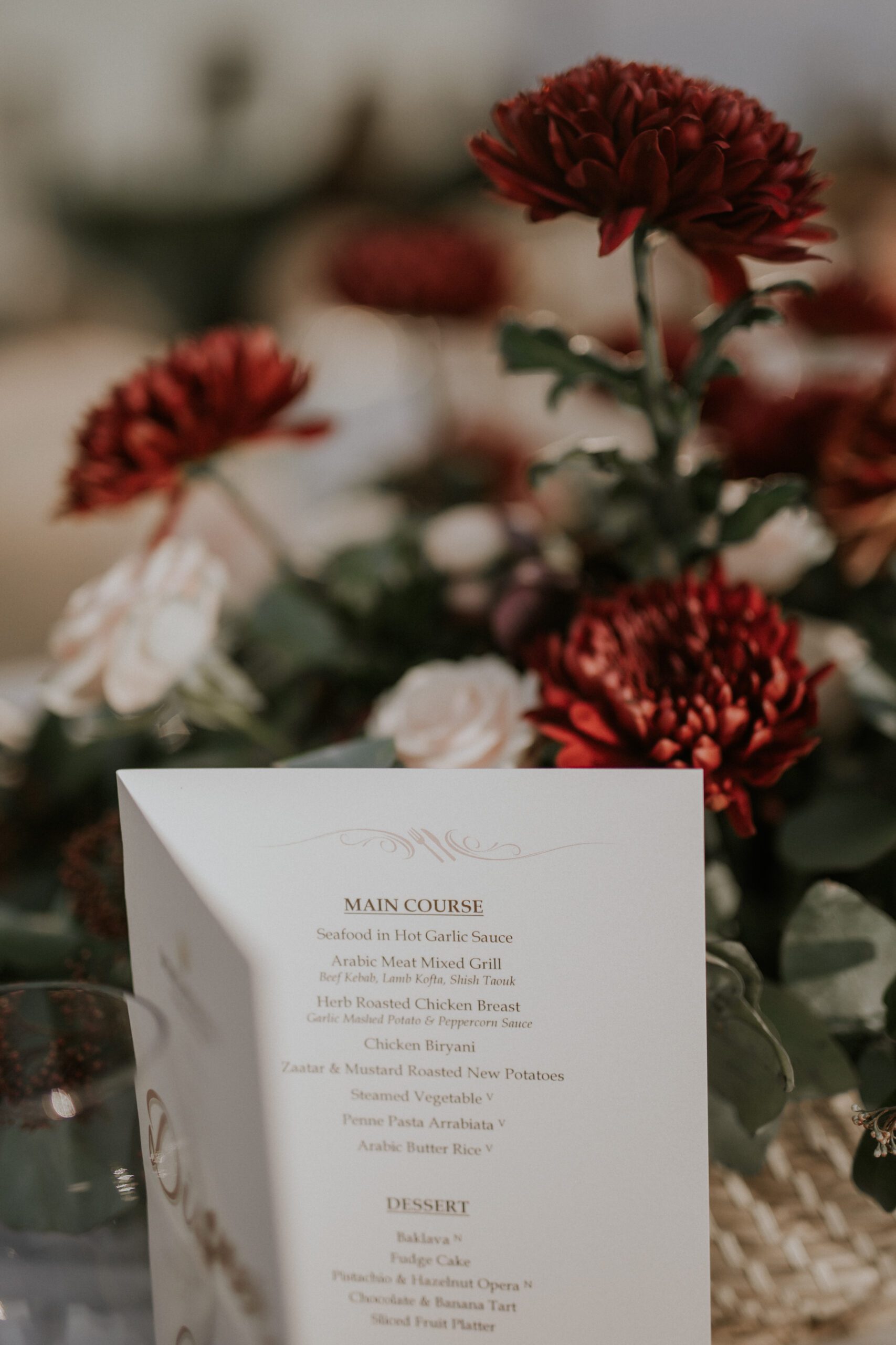 A beautiful Sudani-Algerian wedding that seamlessly blended both cultures and traditions. Set by the beach in Fujairah, the intimate celebration was surrounded by the soothing sound of waves and palm trees. Thoughtful details included clay vases paired with rich burgundy florals, honey jars as guest giveaways, and an array of delicious wedding cakes — a truly unique and heartfelt celebration.