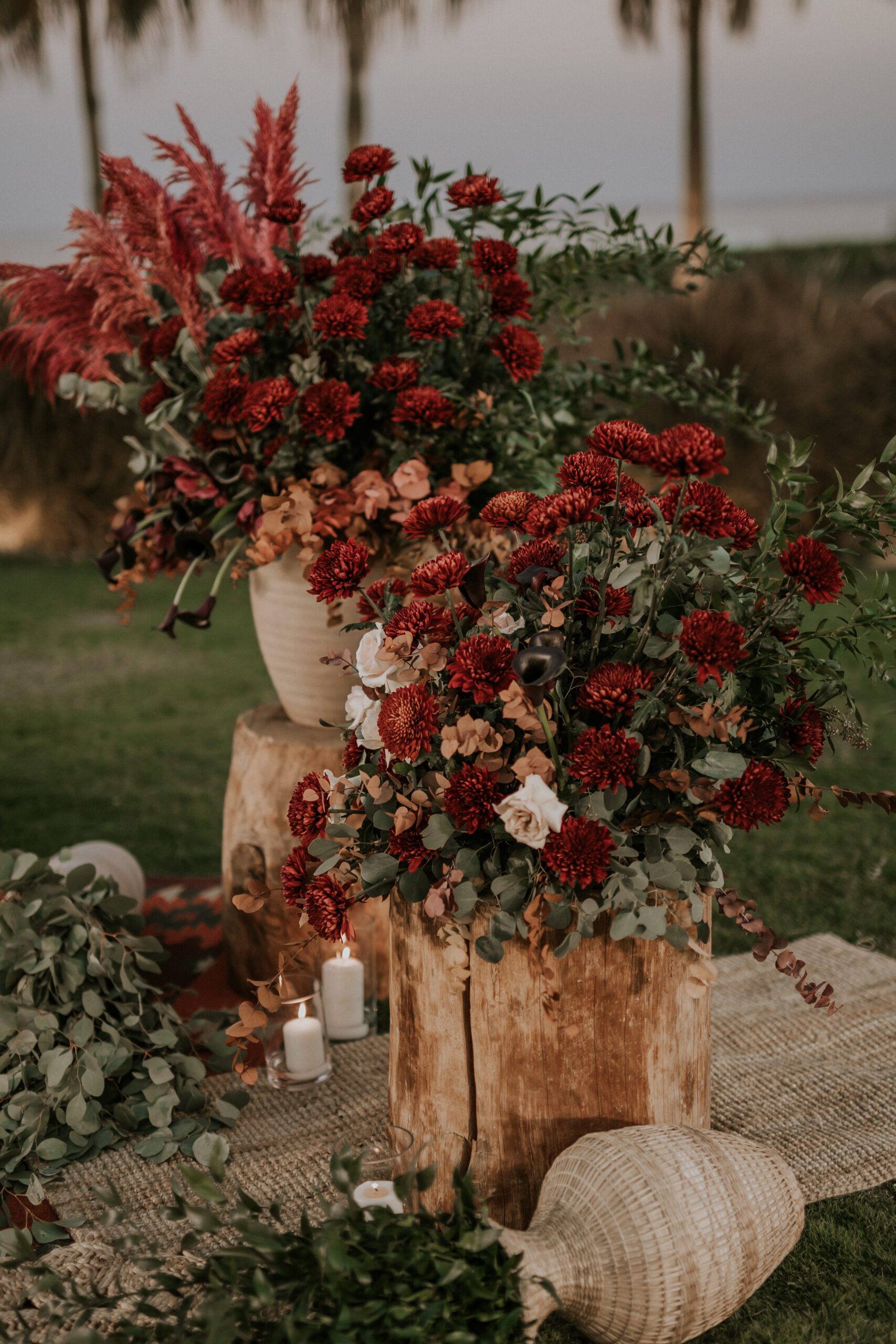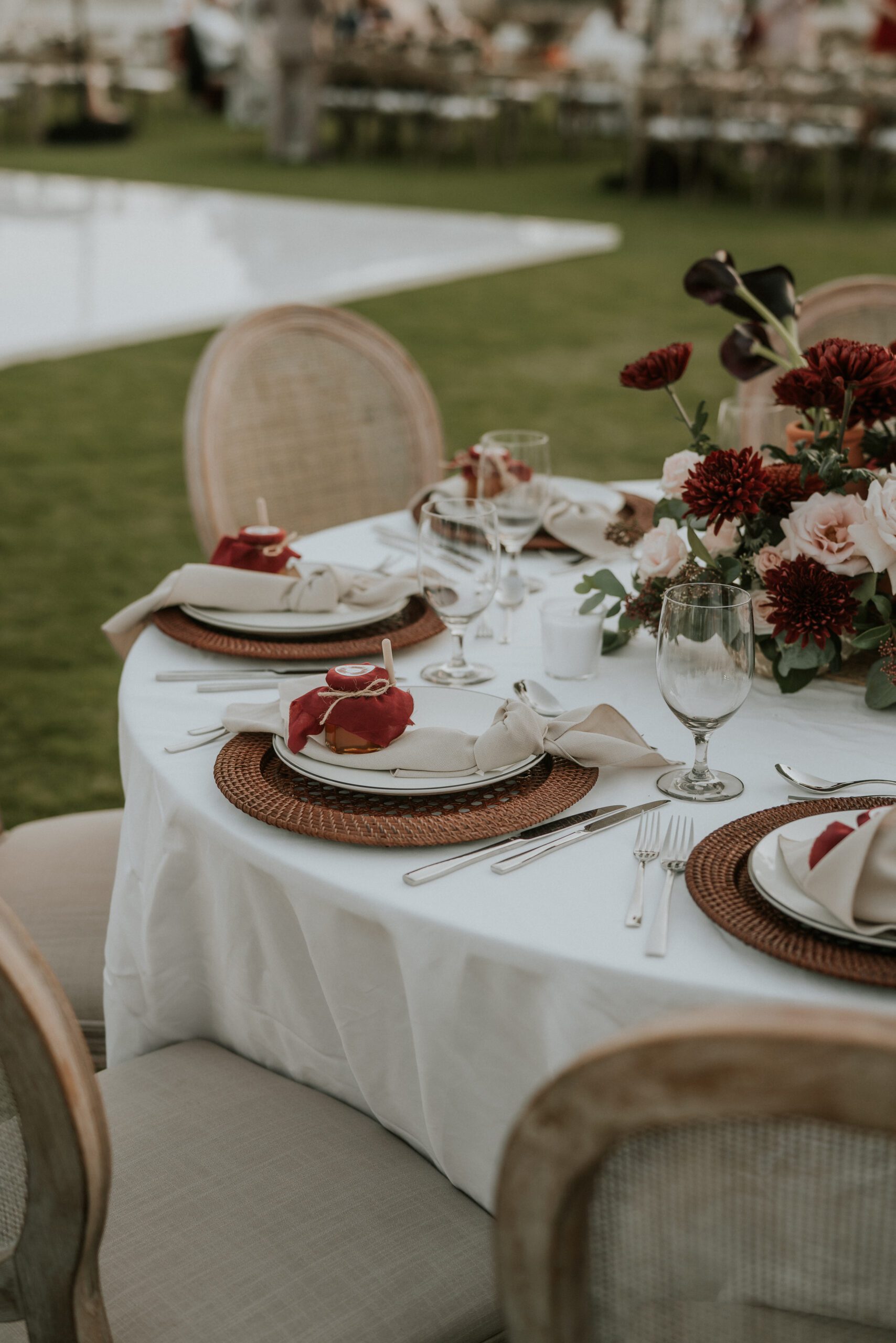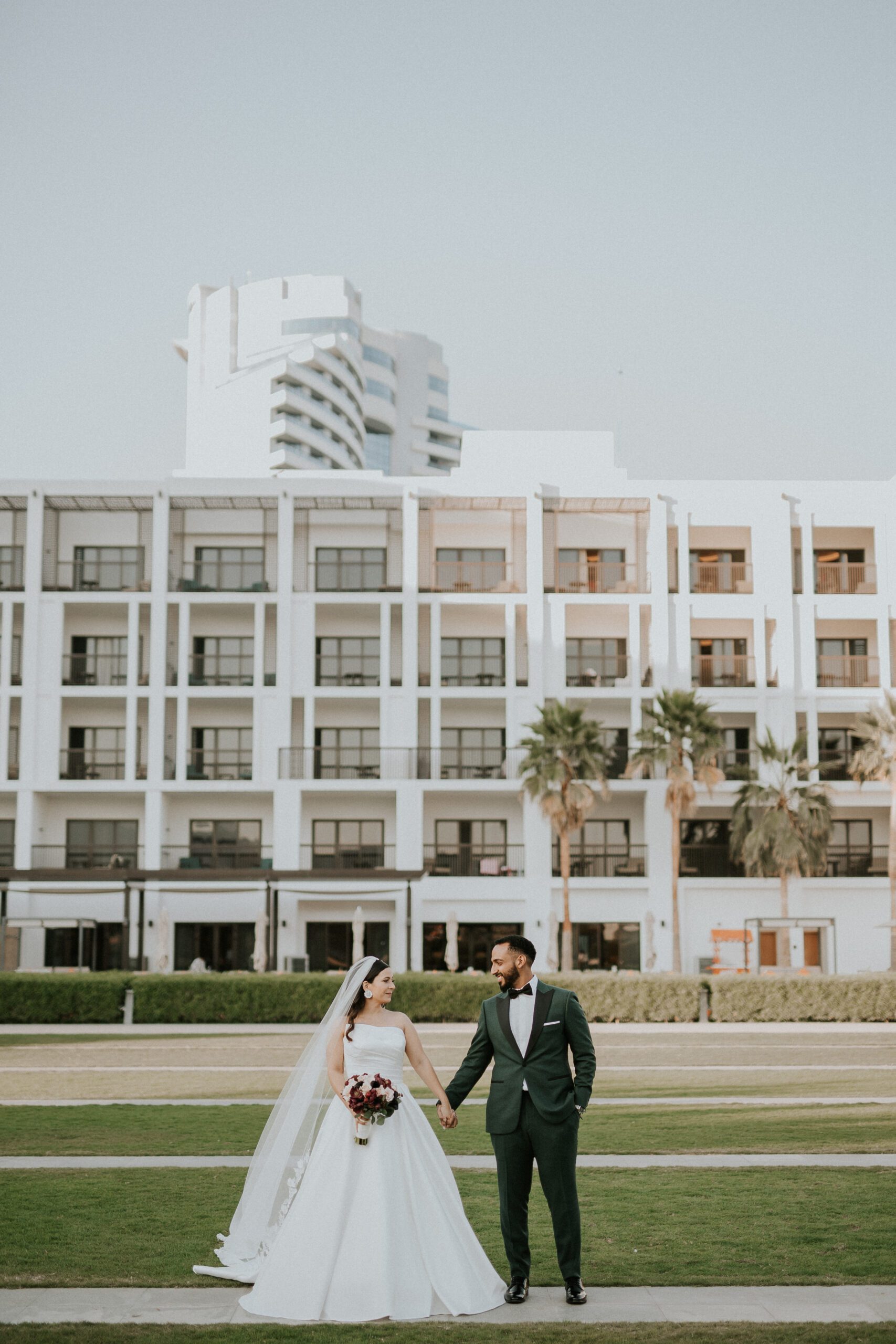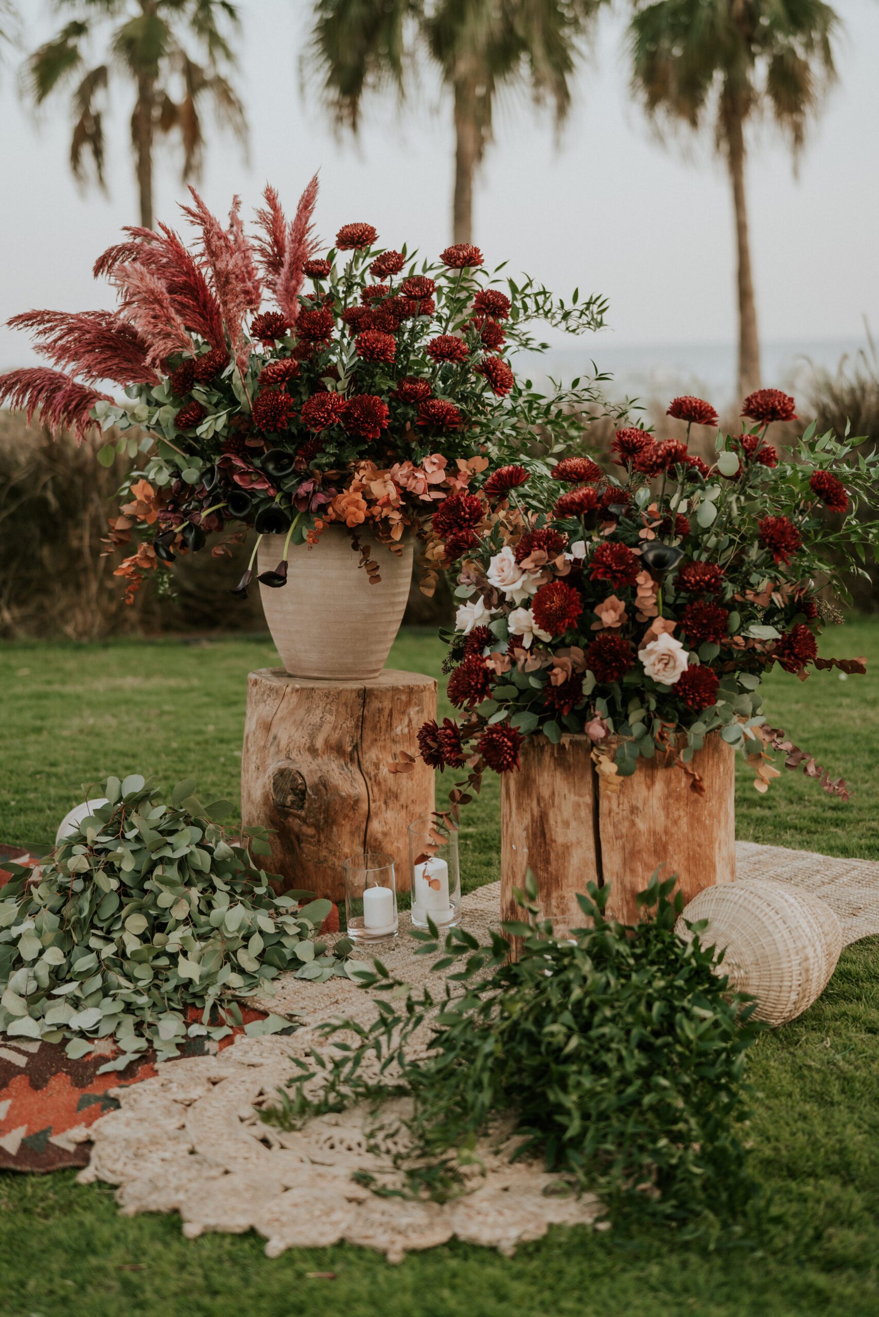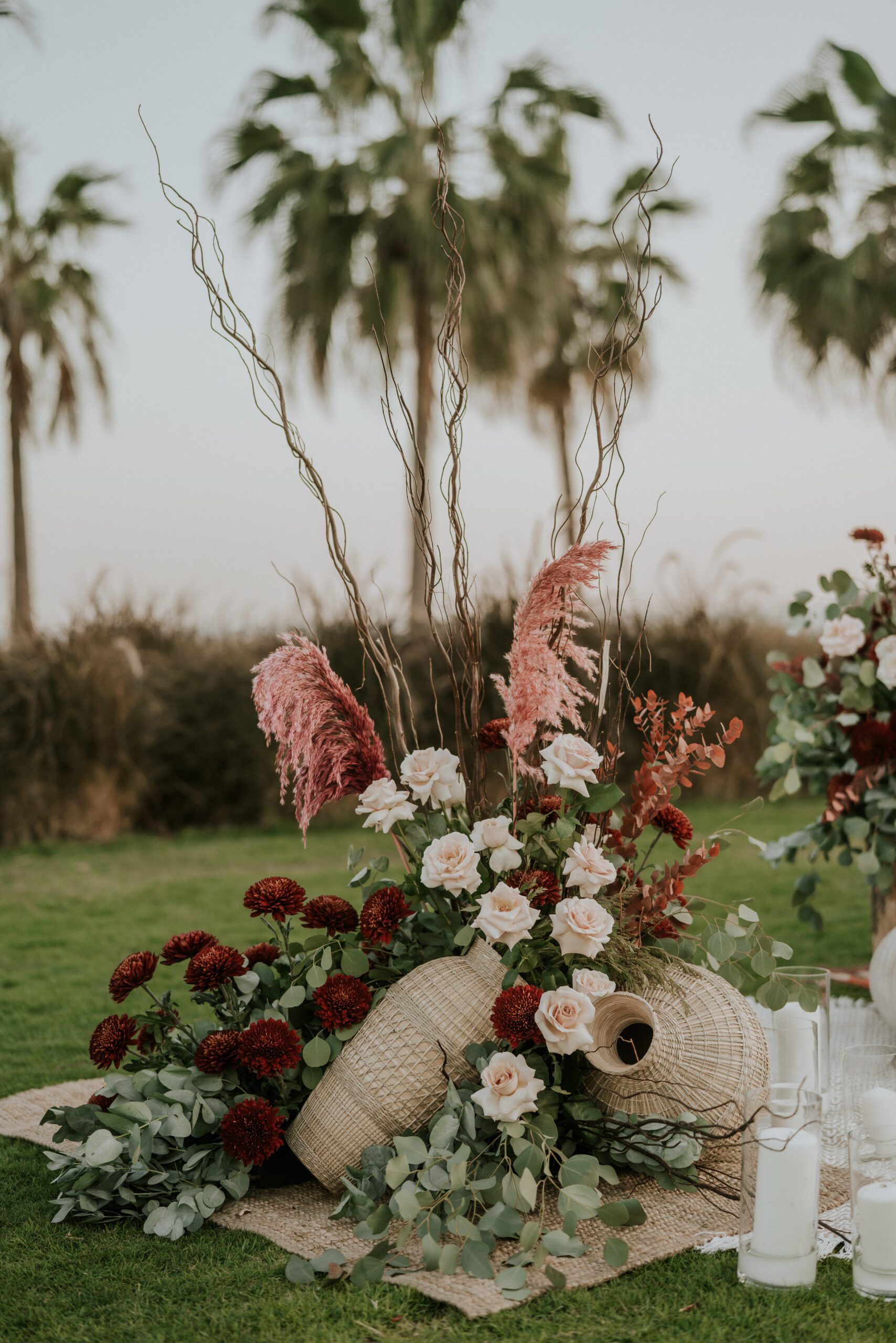 A beautiful Sudani-Algerian wedding that seamlessly blended both cultures and traditions. Set by the beach in Fujairah, the intimate celebration was surrounded by the soothing sound of waves and palm trees. Thoughtful details included clay vases paired with rich burgundy florals, honey jars as guest giveaways, and an array of delicious wedding cakes — a truly unique and heartfelt celebration.